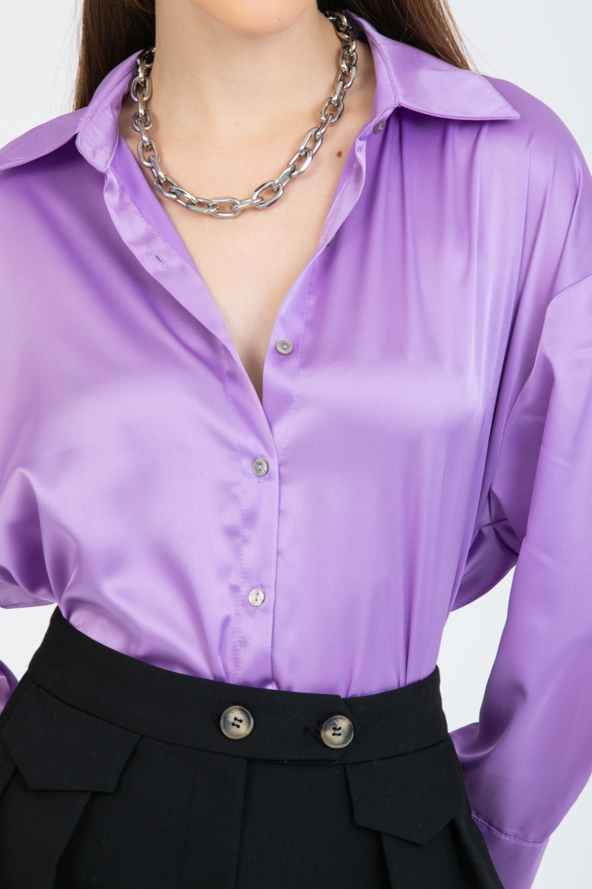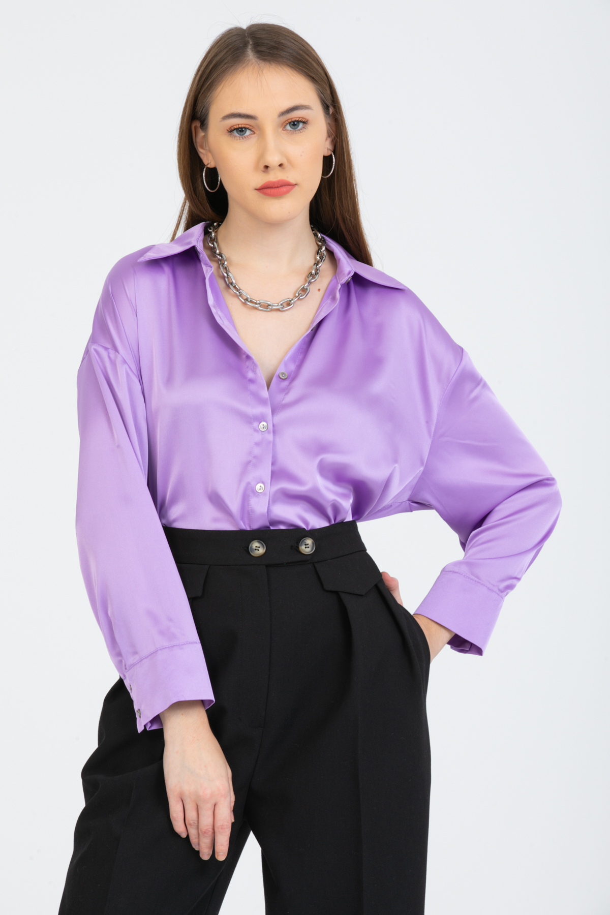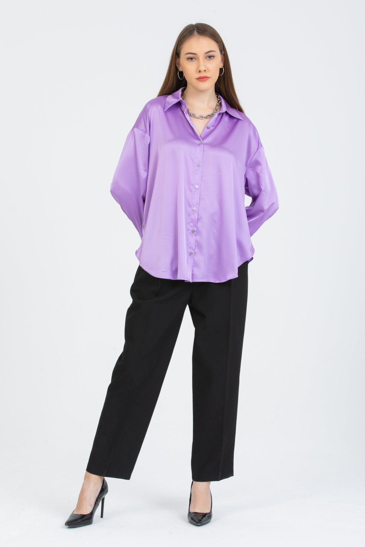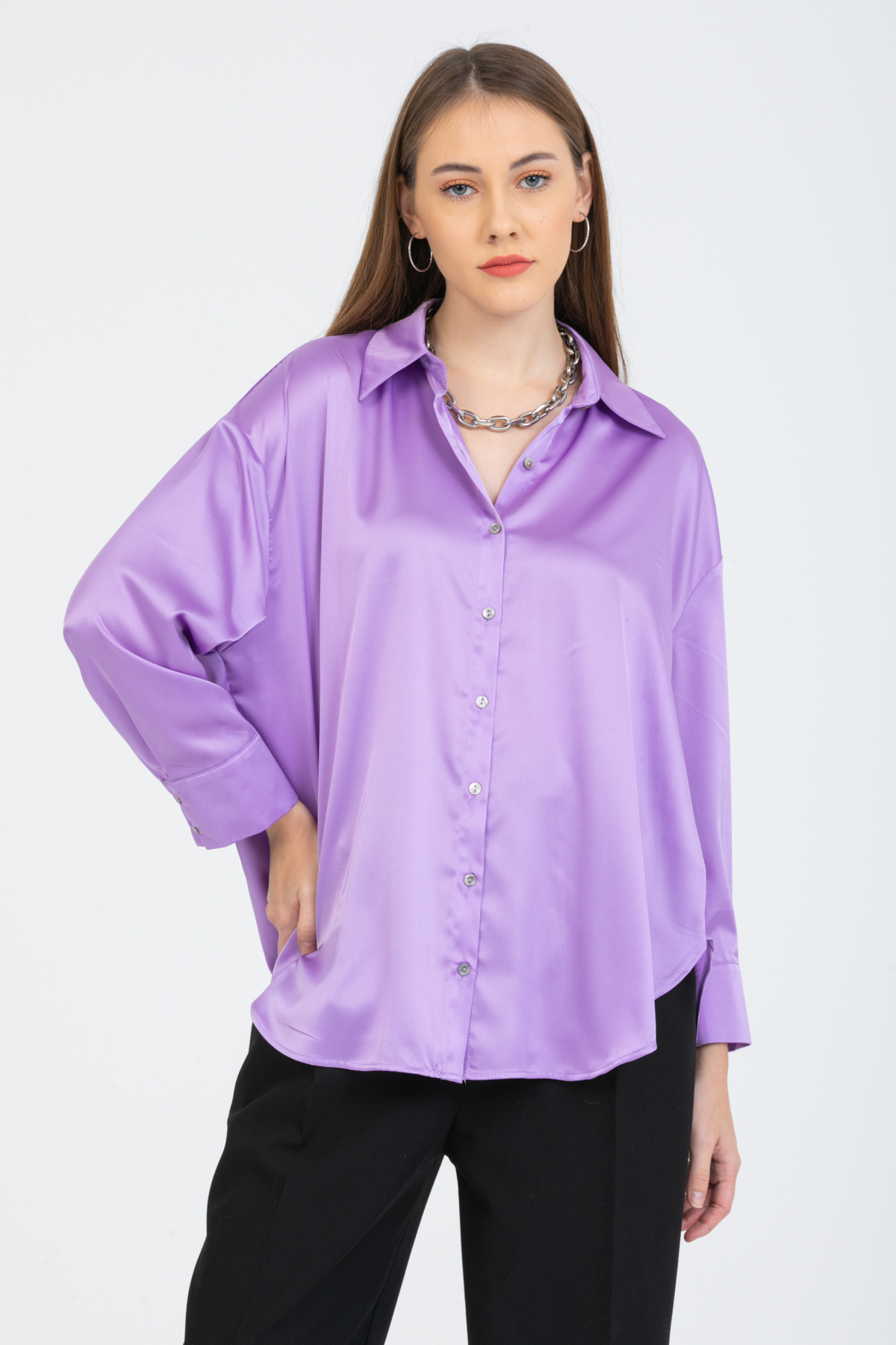 Kadın Salaş Oversize Kesim İpek Saten Gömlek
