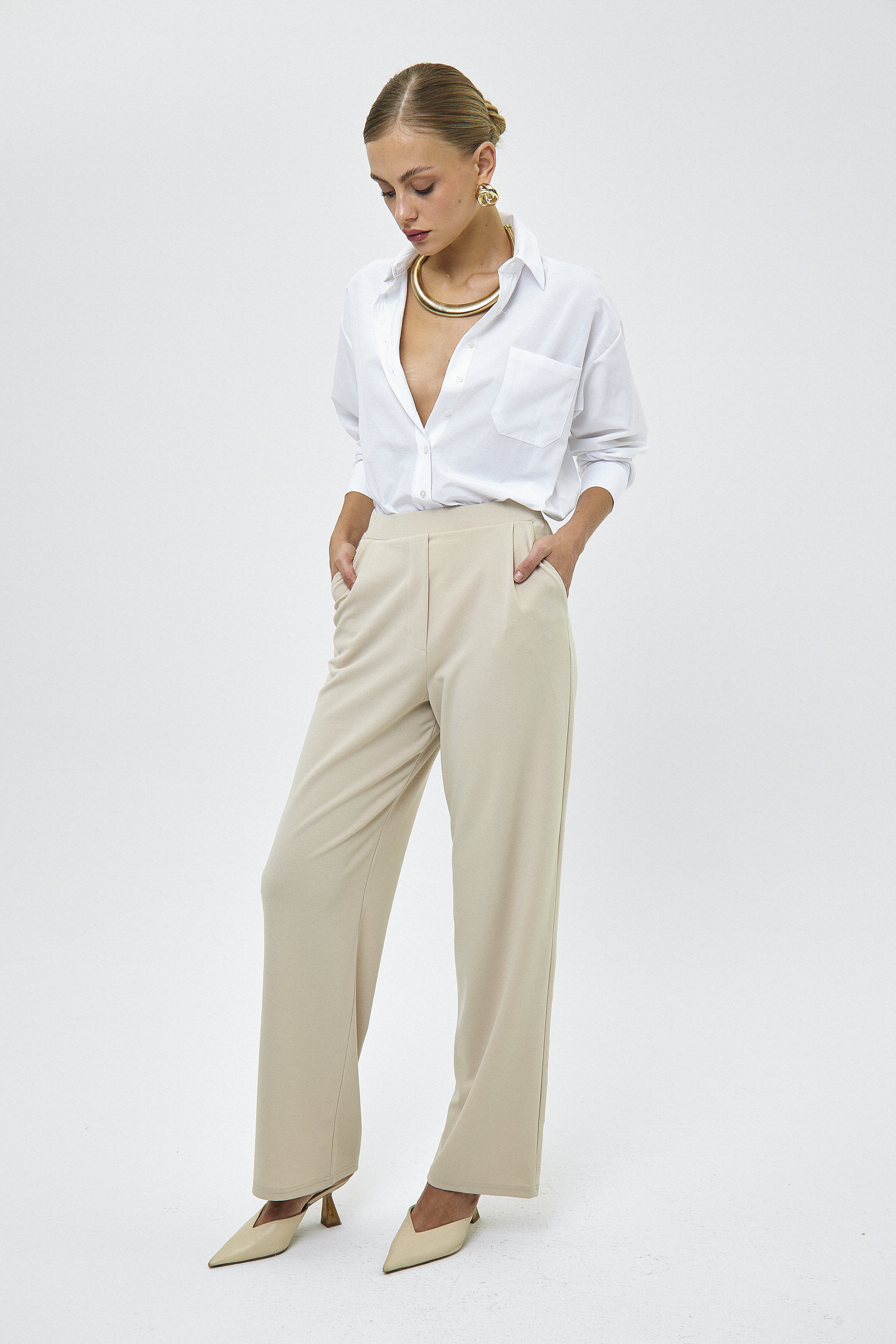 Kadın Basic Kesim Vücudu Saran Likralı Gizli Düğme Özellikli Gömlek