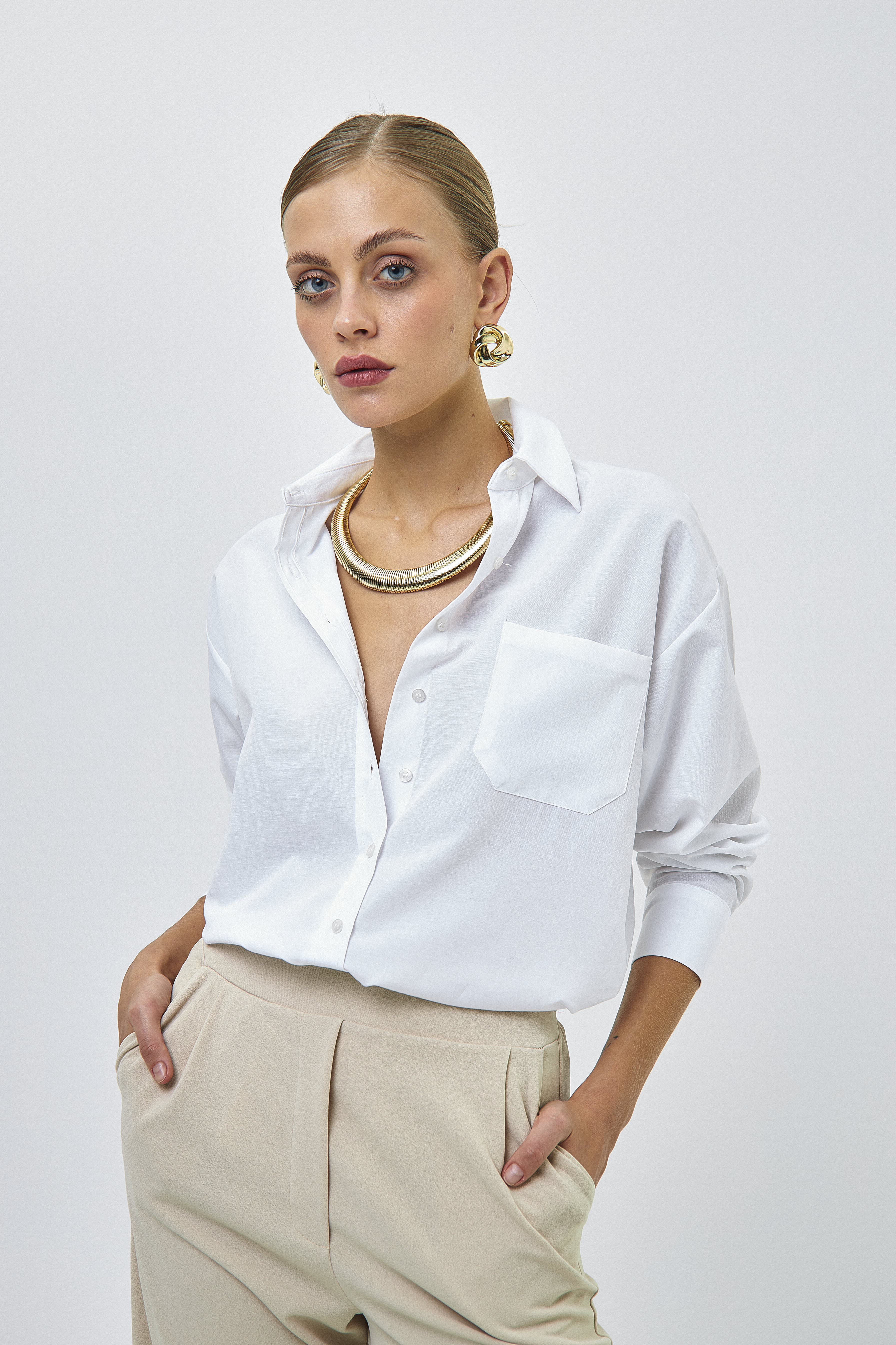 Kadın Tek Cepli Salaş Oversize Boyfriend Gömlek