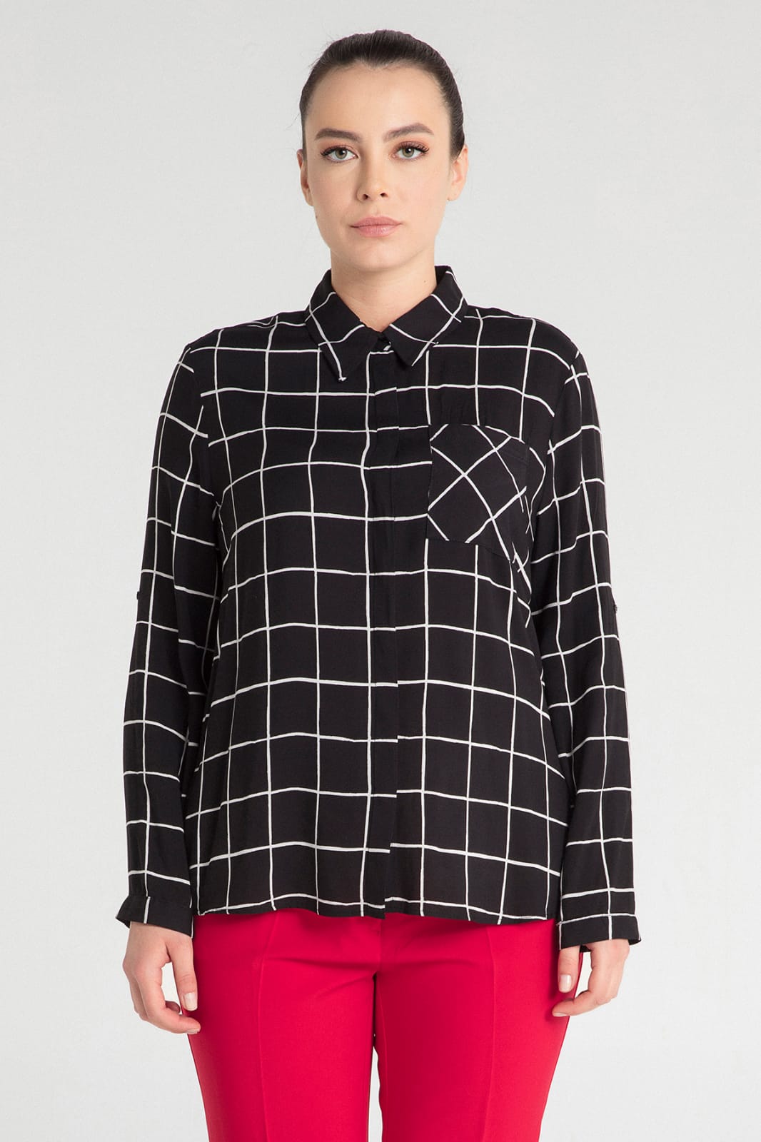 Kare Çizgili Kadın Gömlek