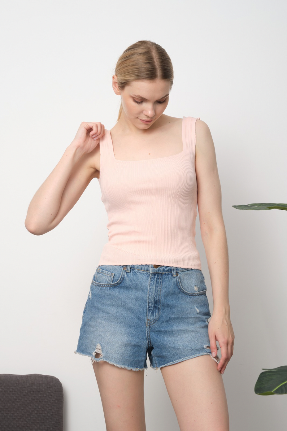 Dökümlü Degaje Yaka İç Göstermeyen Kısa Sıfır Kollu Bluz Gömlek