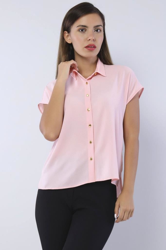 Ürün Özellikleri: Klasik yaka, altın rengi düğme detaylı, bol kalıp, kısa kollu gömlek.
