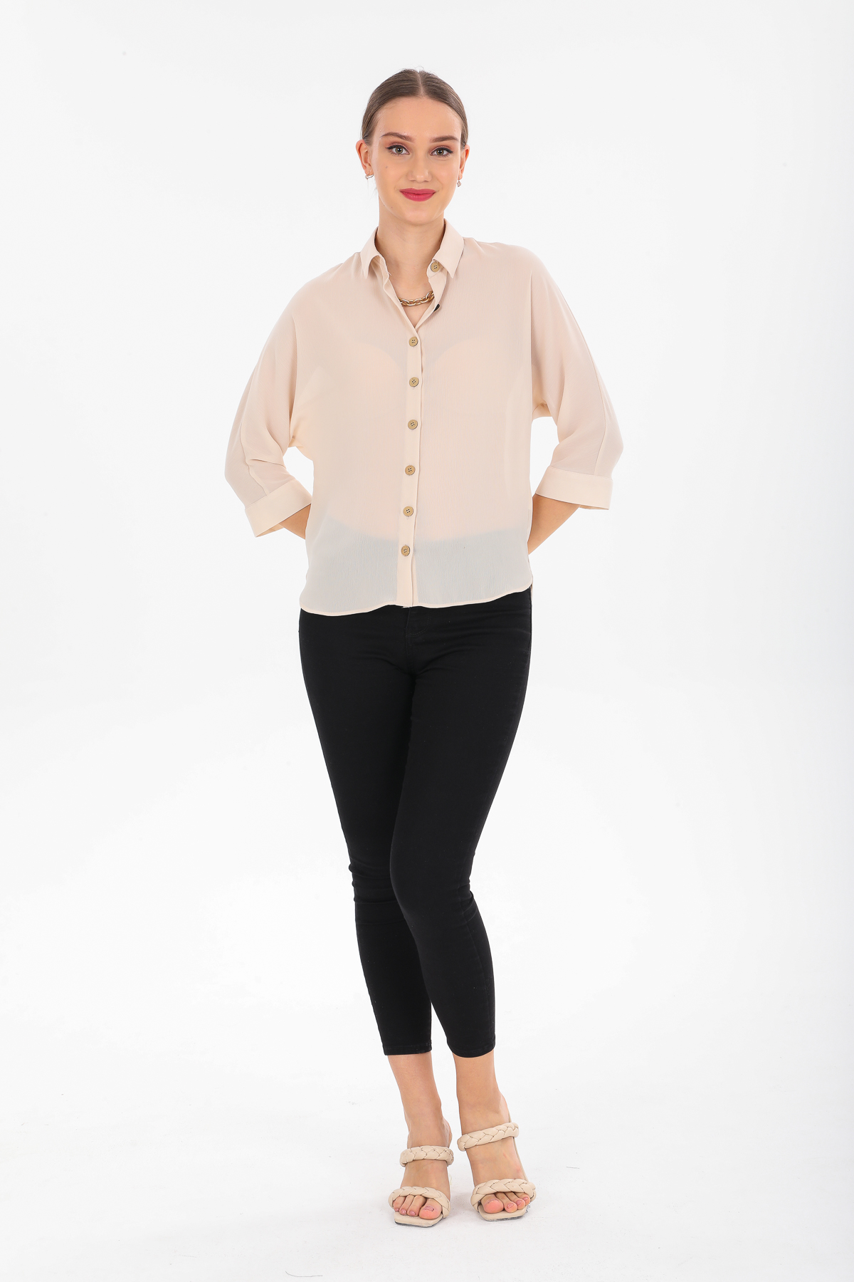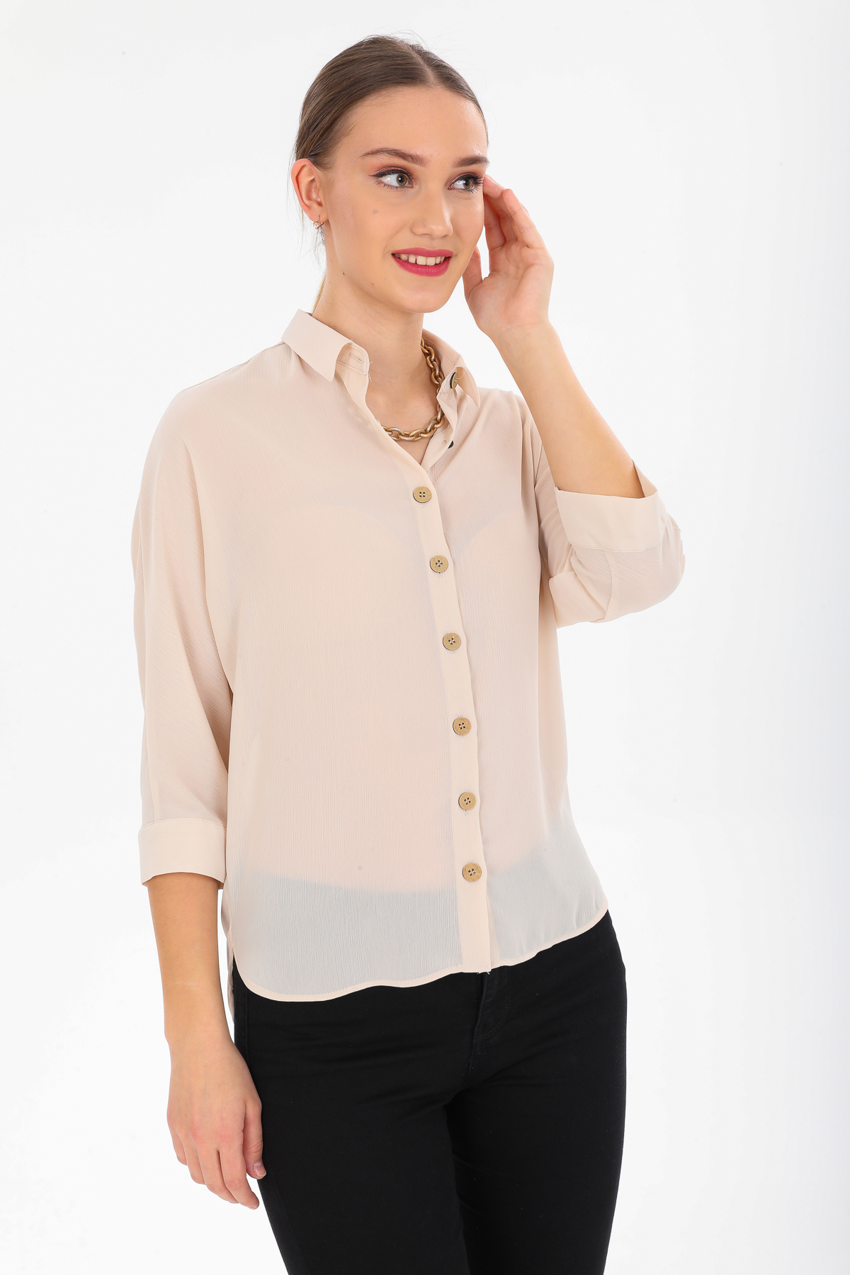 Kadın Basic Gizli Düğme Gömlek
