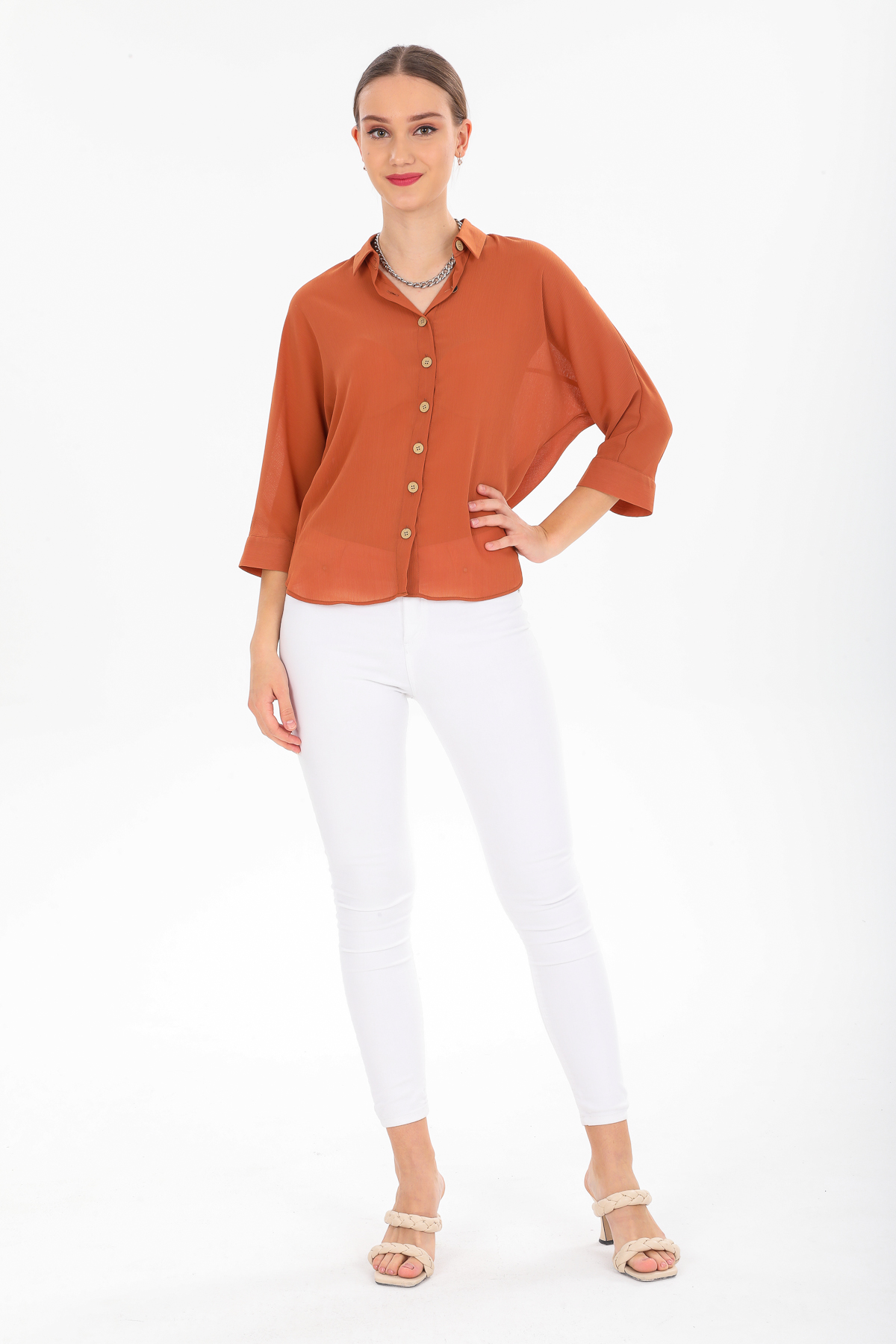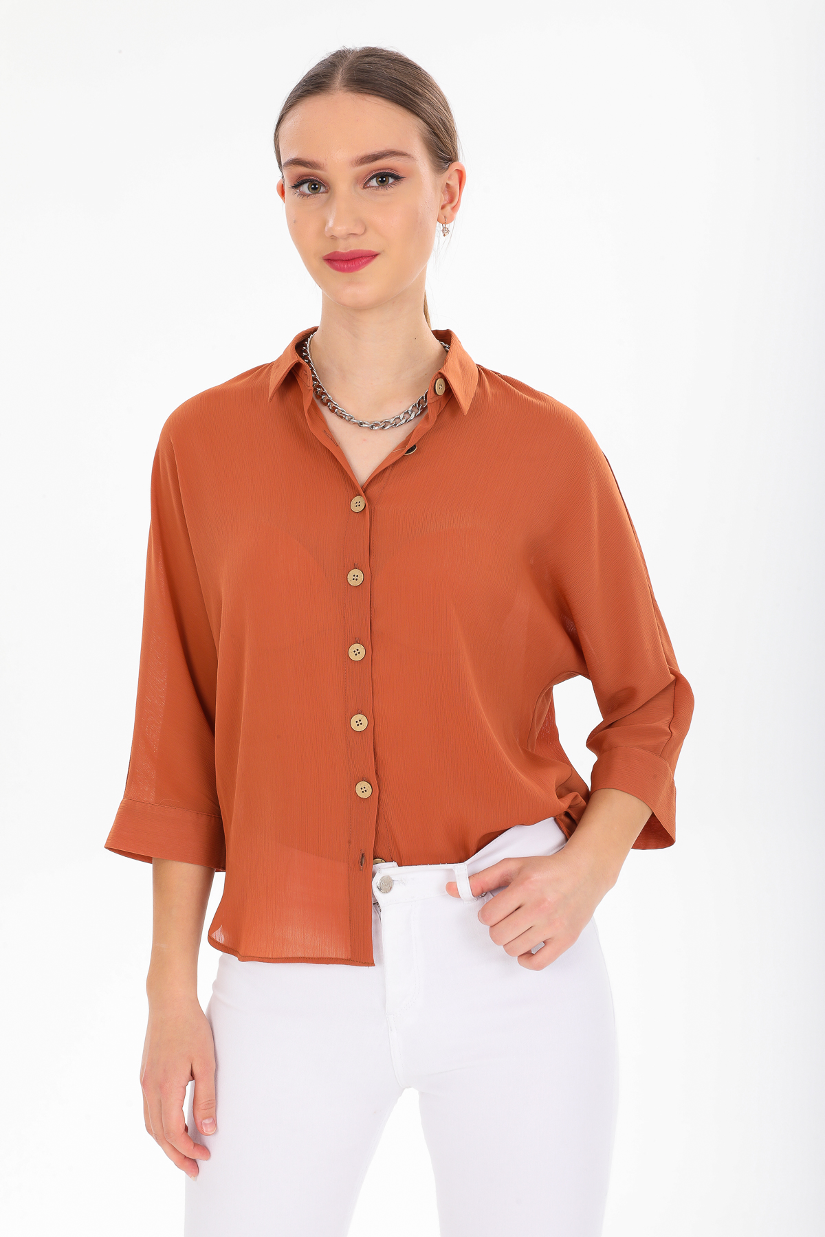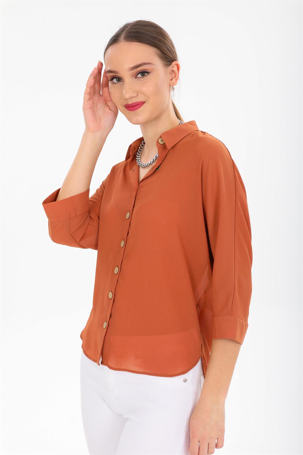 Kadın Basic Gizli Düğme Özellikli Gömlek