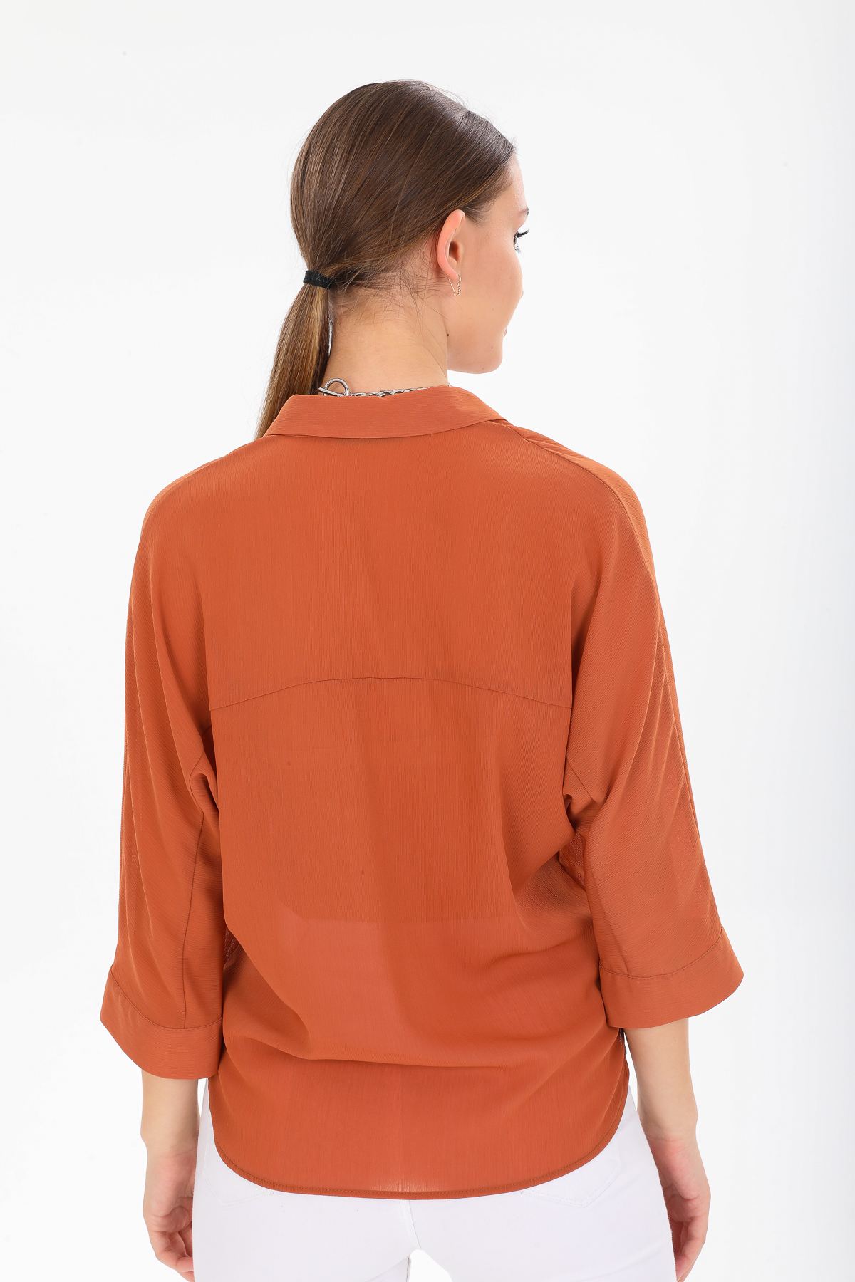 Kadın Gizli Düğme Özellikli Cepli Tunik Gömlek