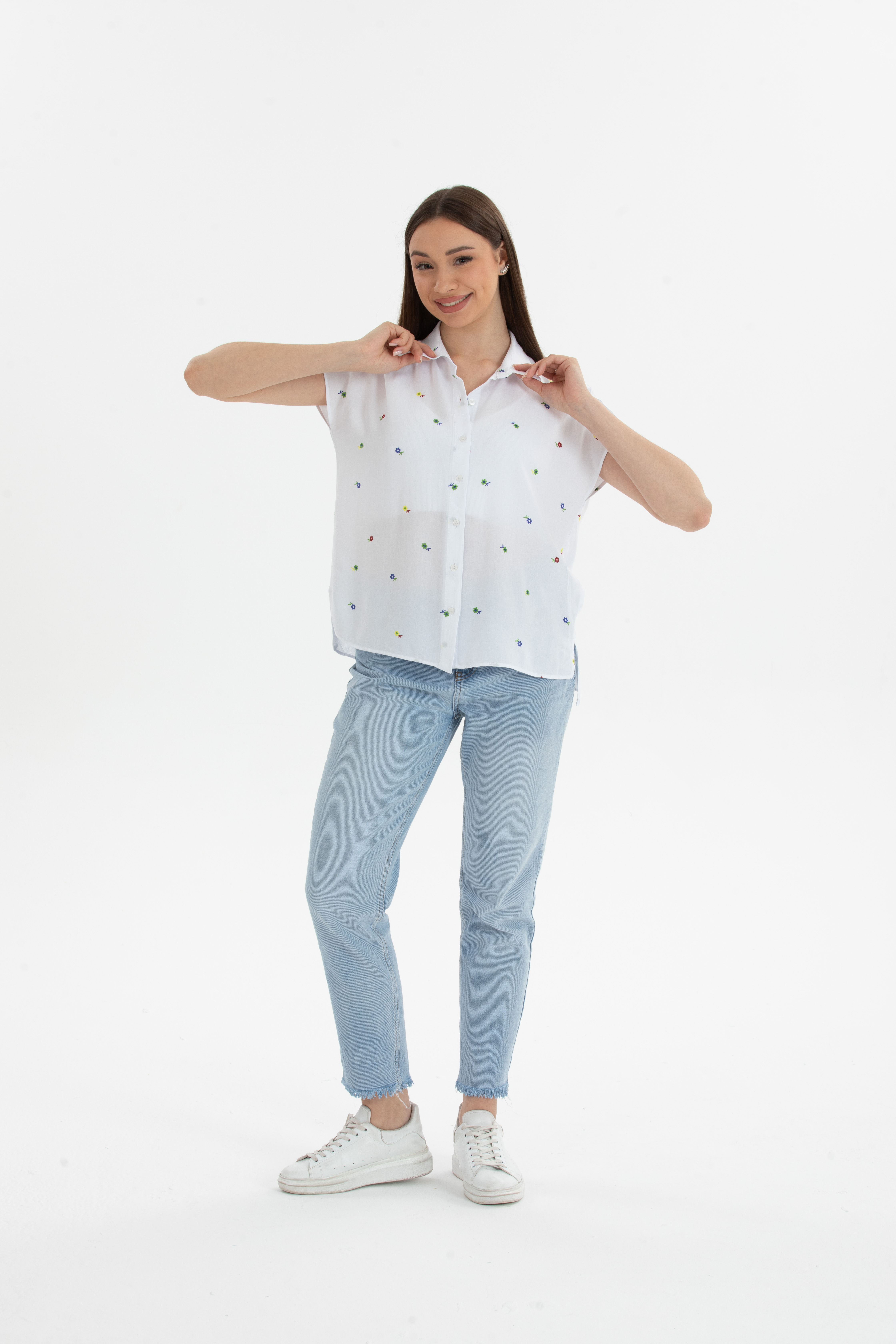 Kadın Basic Gizli Düğme Özellikli Gömlek