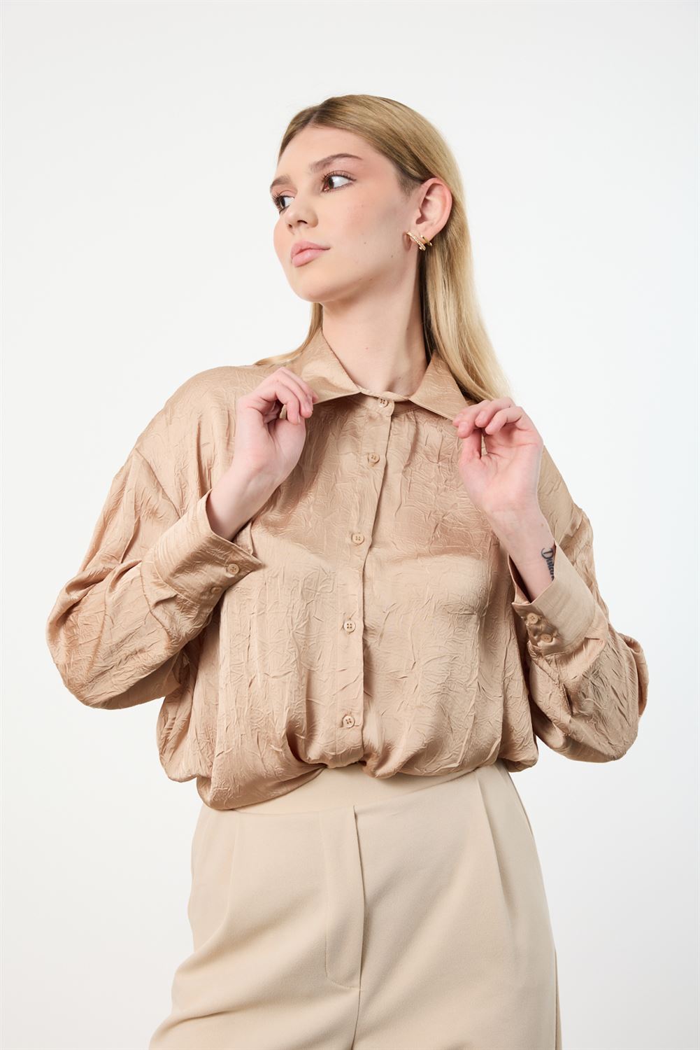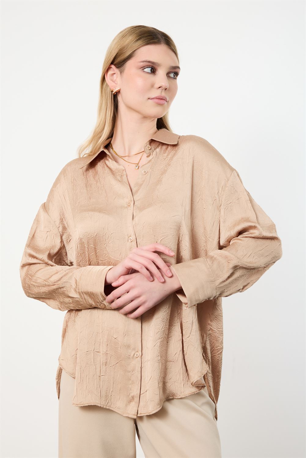 Şıklığı ve Rahatlığı Bir Arada Sunan Kraş Saten Oversize Gömlek