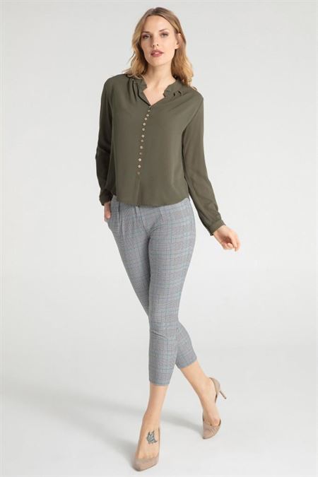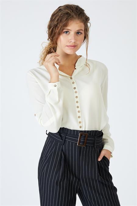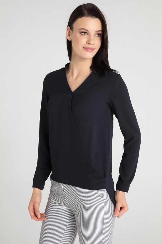 Ürün Özellikleri: Kruvaze yaka özellikli, önü kısa arkası uzun, tam kalıp, uzun kollu bluz.