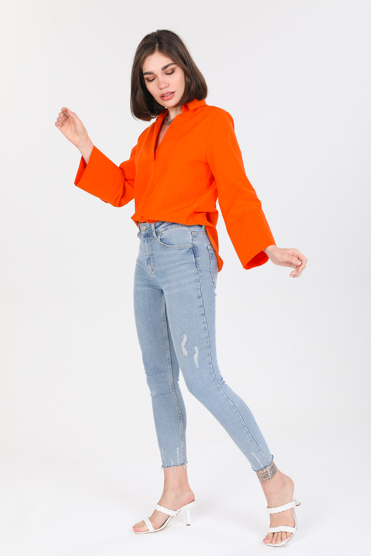 Önü Fırfırlı Dökümlü İç Göstermeyen Bluz Şık Gömlek