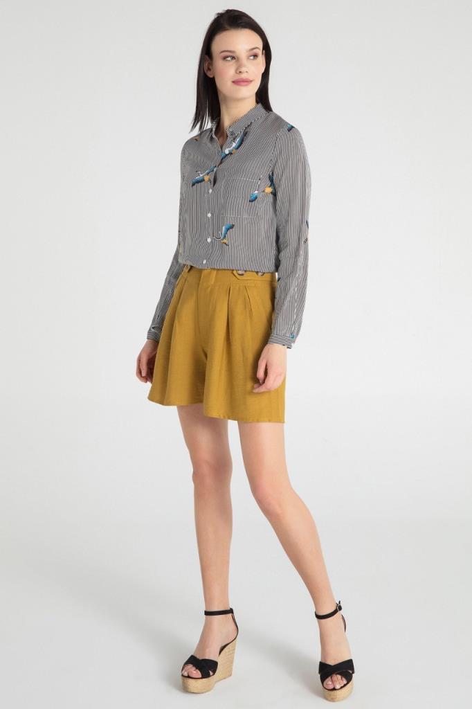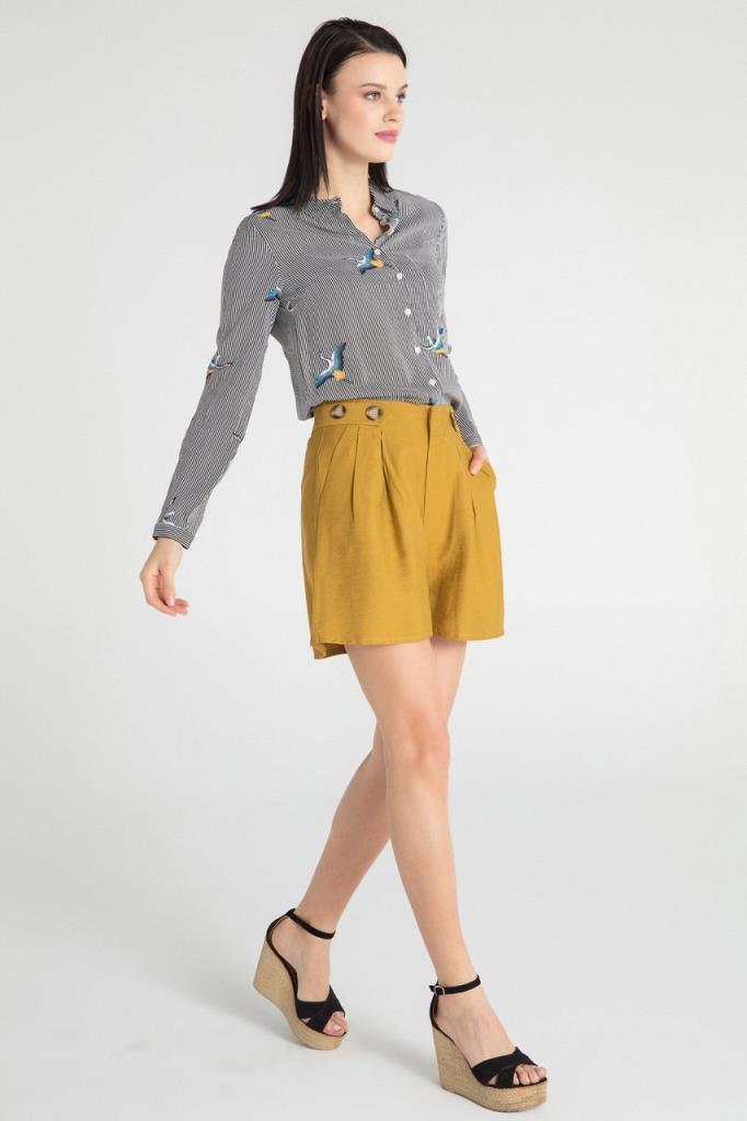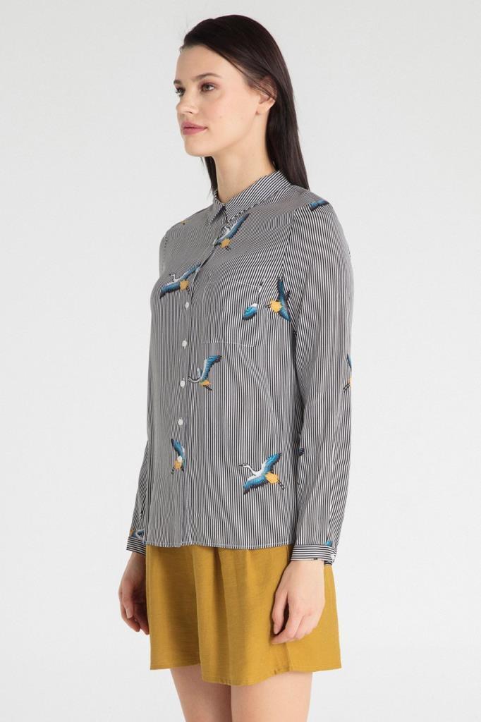 Kuş Baskılı Siyah Gömlek