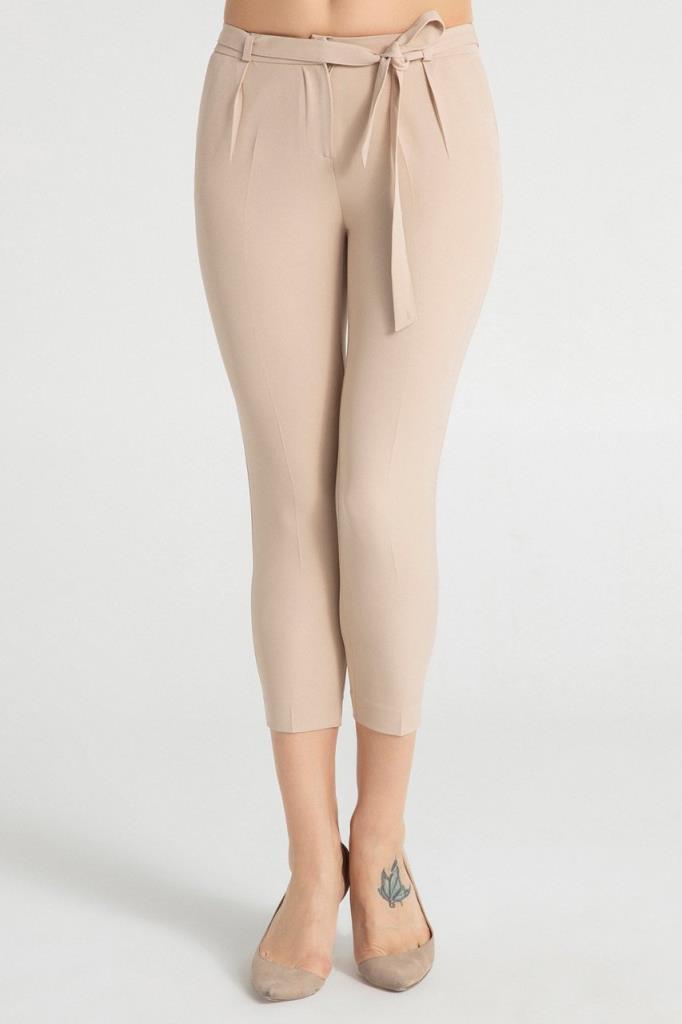Ürün Özellikleri: Normal bel, pileli, kuşak detaylı, ön cepli, dar paça, bilekte pantolon.