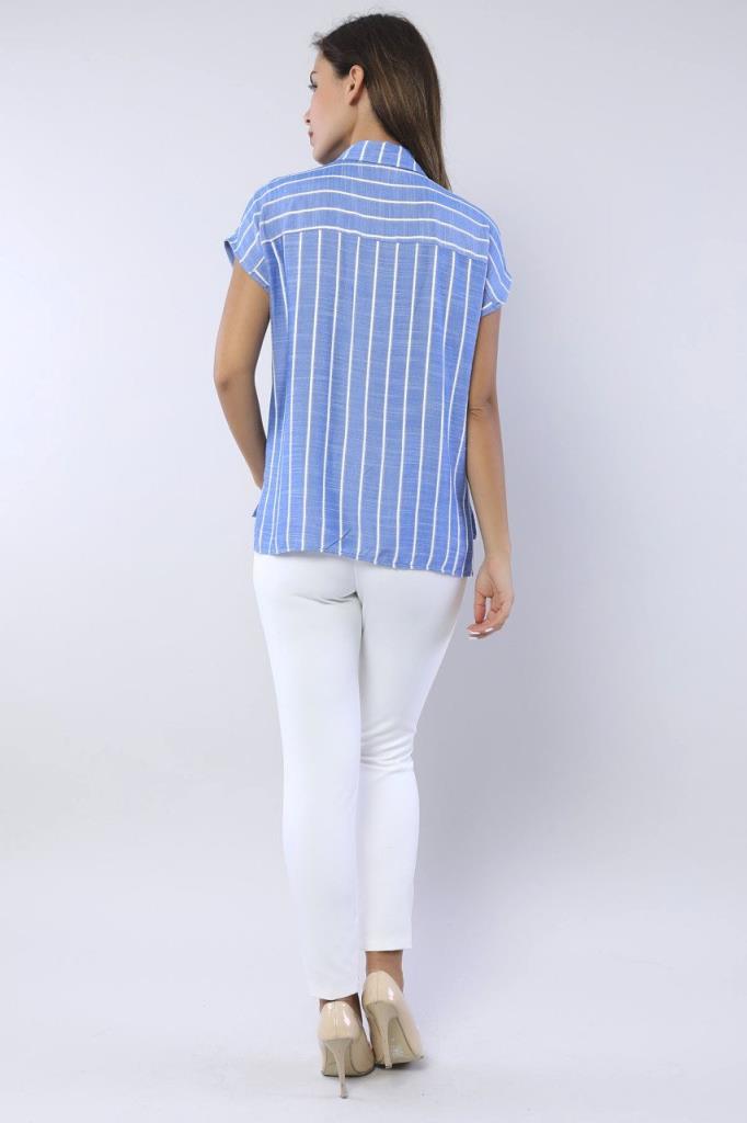 Ürün Özellikleri: Klasik yaka, beyaz düğmeli, bol kalıp, yarım kollu gömlek.