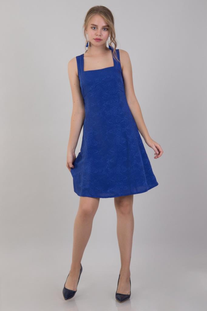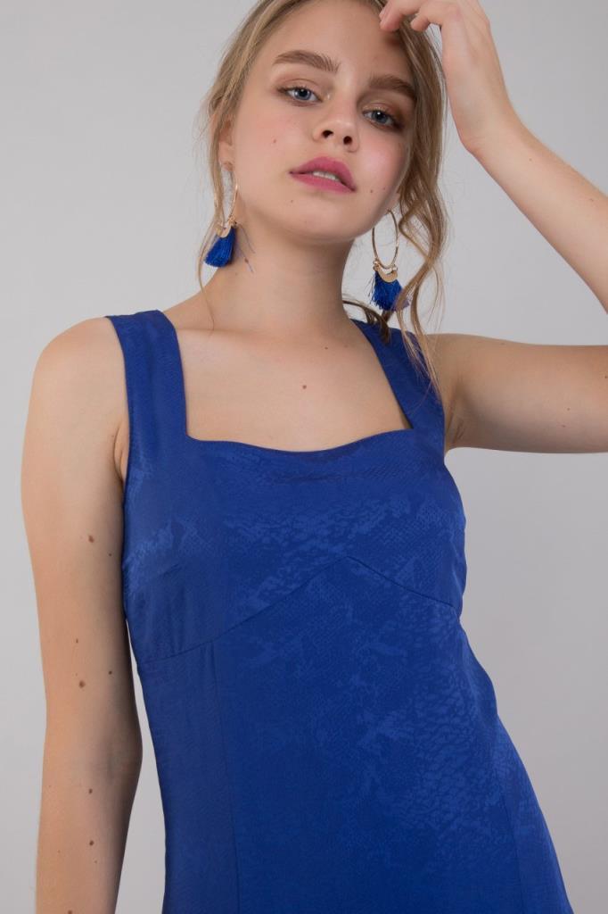 Ürün Özellikleri: Askılı, kare yaka, kendinden desenli elbise.