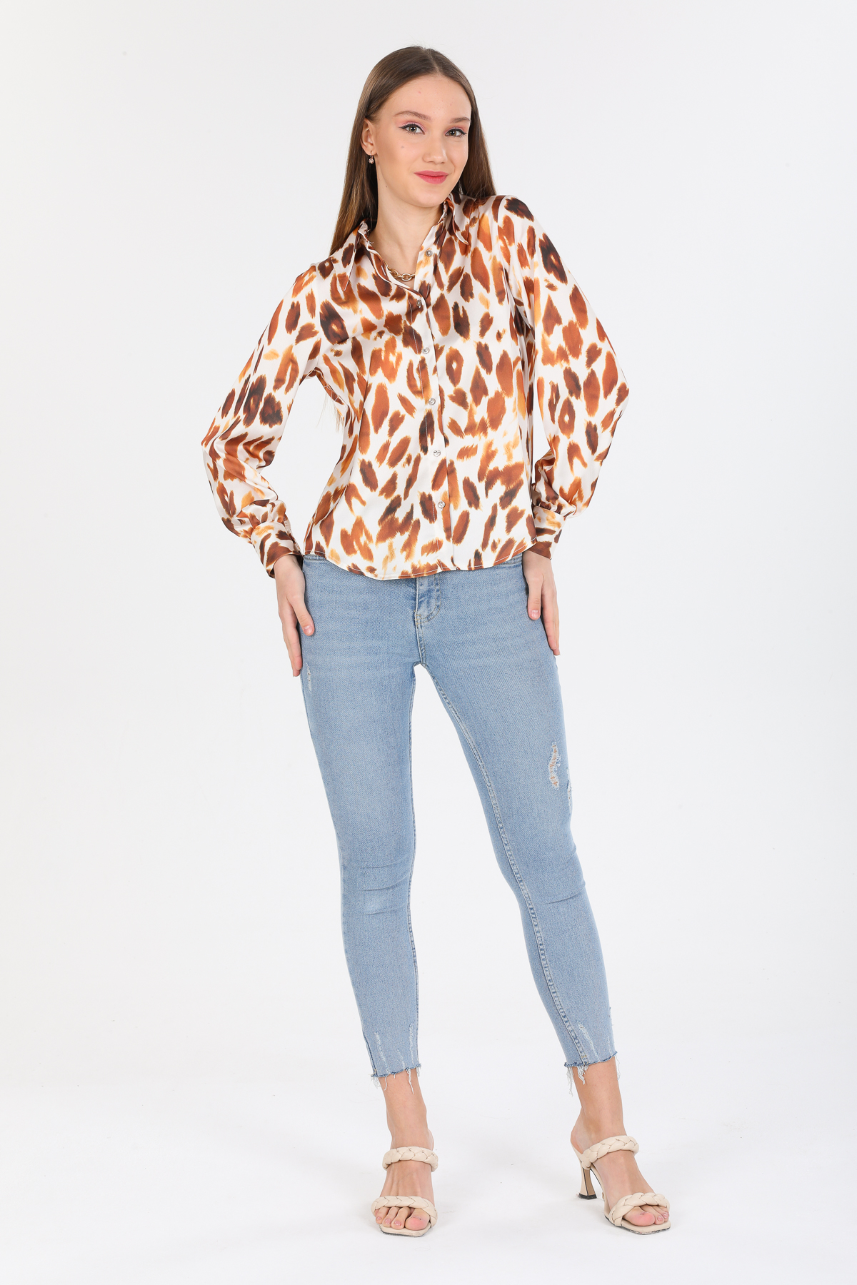 Önü Fırfırlı Dökümlü İç Göstermeyen Bluz Şık Gömlek