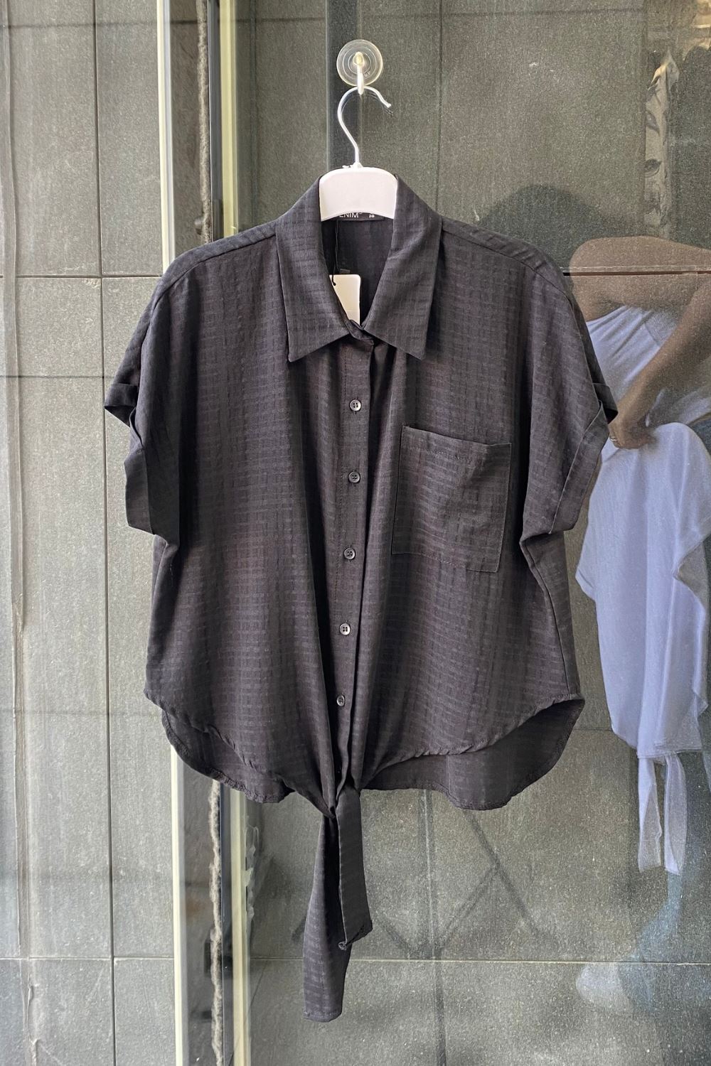 Luna Keten Önü Bağlamalı Crop Gömlek