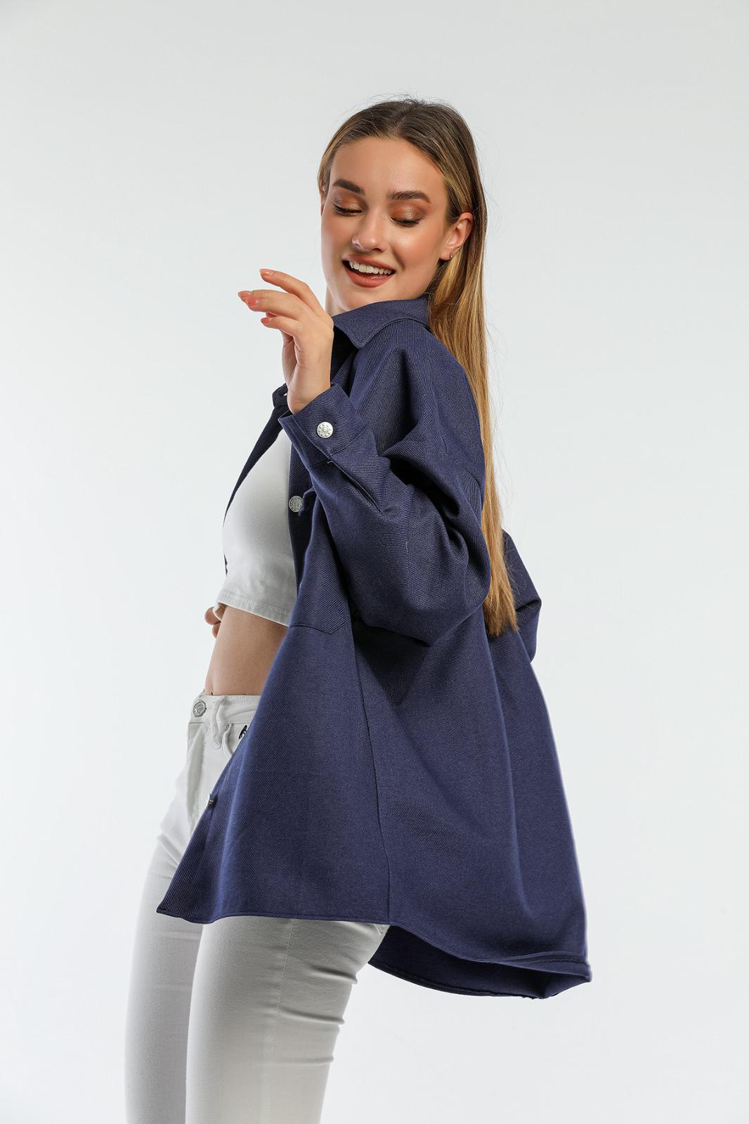 Metal Düğmeli Gabardin Kumaş Ceket Gömlek