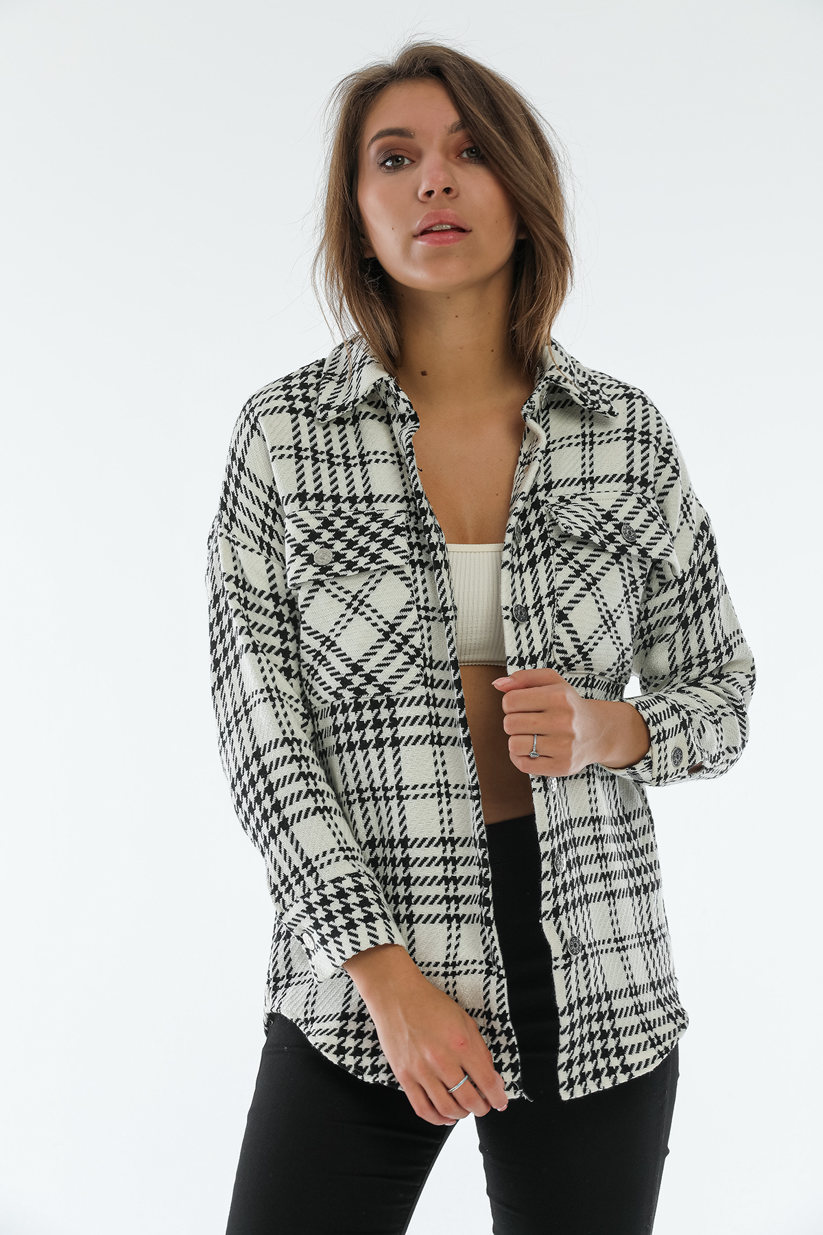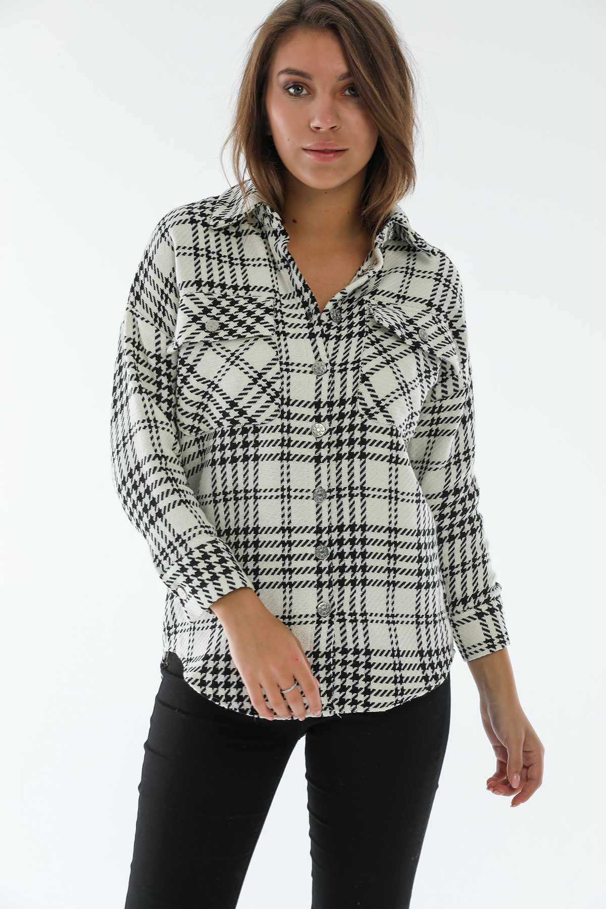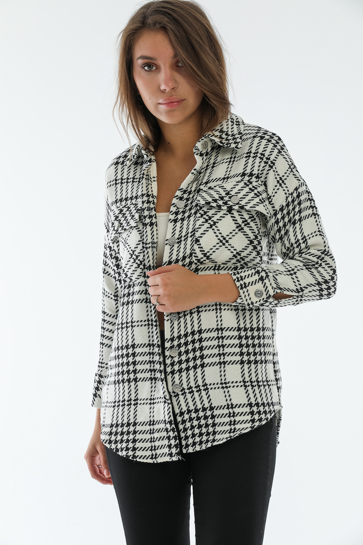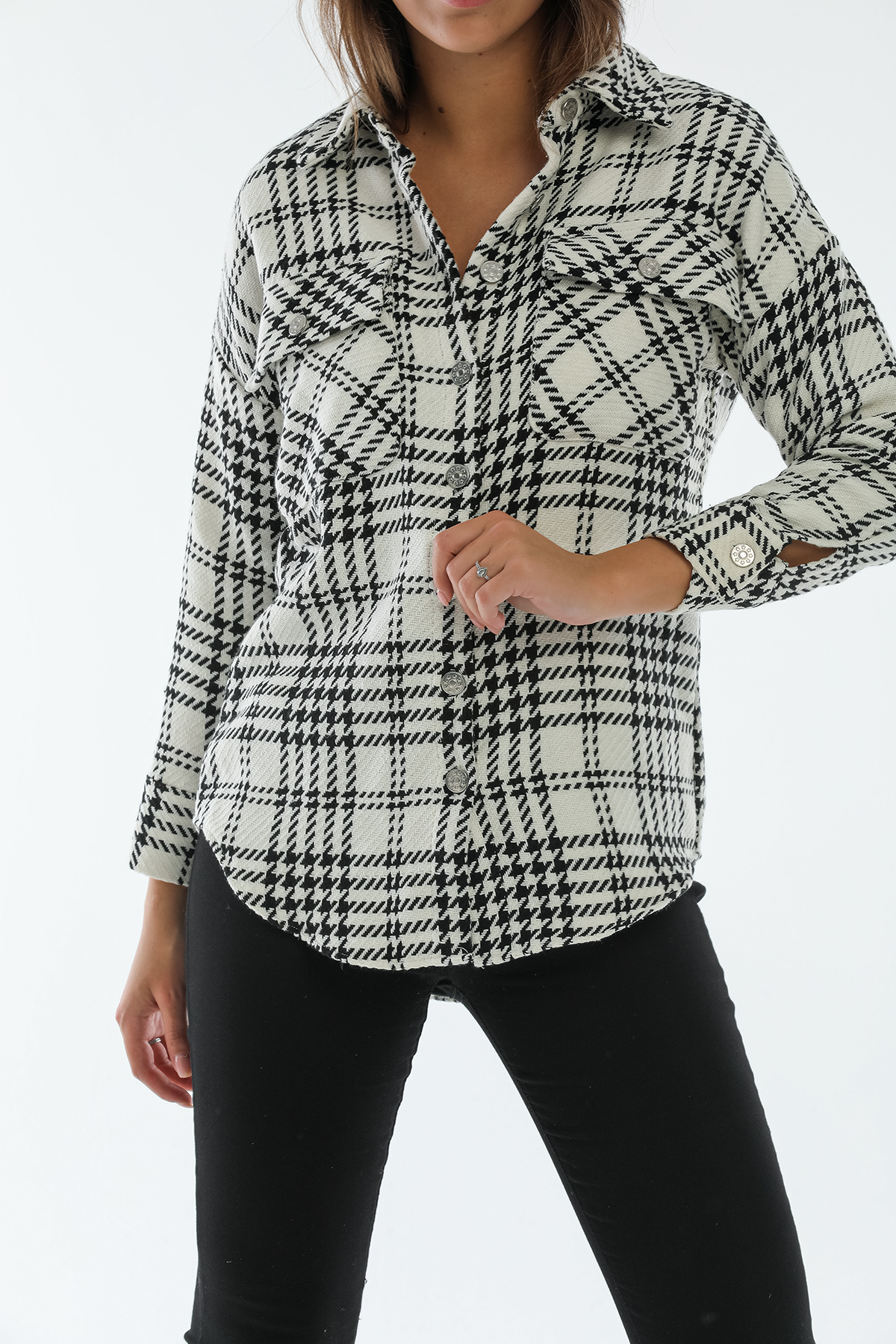 Ürün Özellikleri: Klasik yaka, tahta düğmeli, bol kalıp, cep detaylı uzun kollu oduncu gömlek.