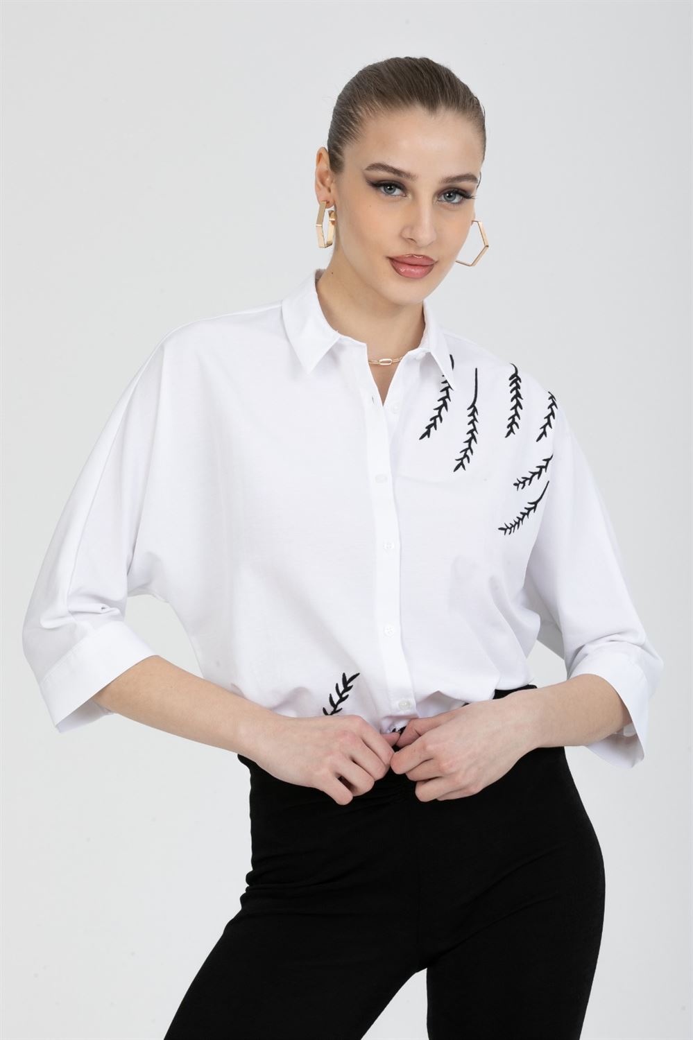 Kadın Basic Gizli Düğme Özellikli Gömlek