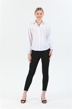 Omuz Büzgü Detaylı Balon Kol Gömlek
