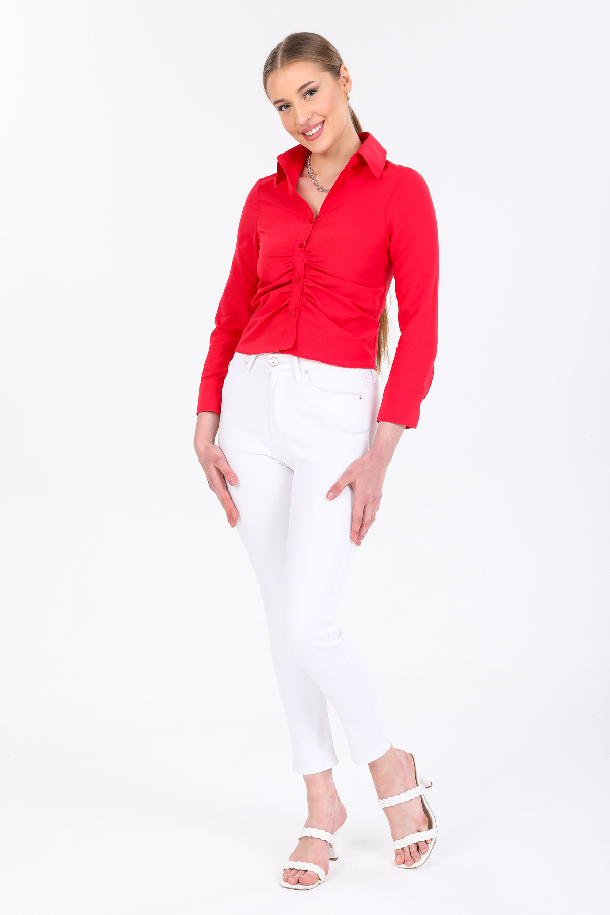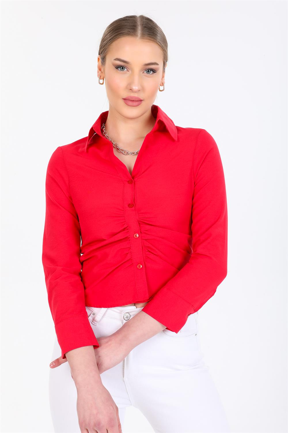 Kadın Basic Gizli Düğme Özellikli Gömlek