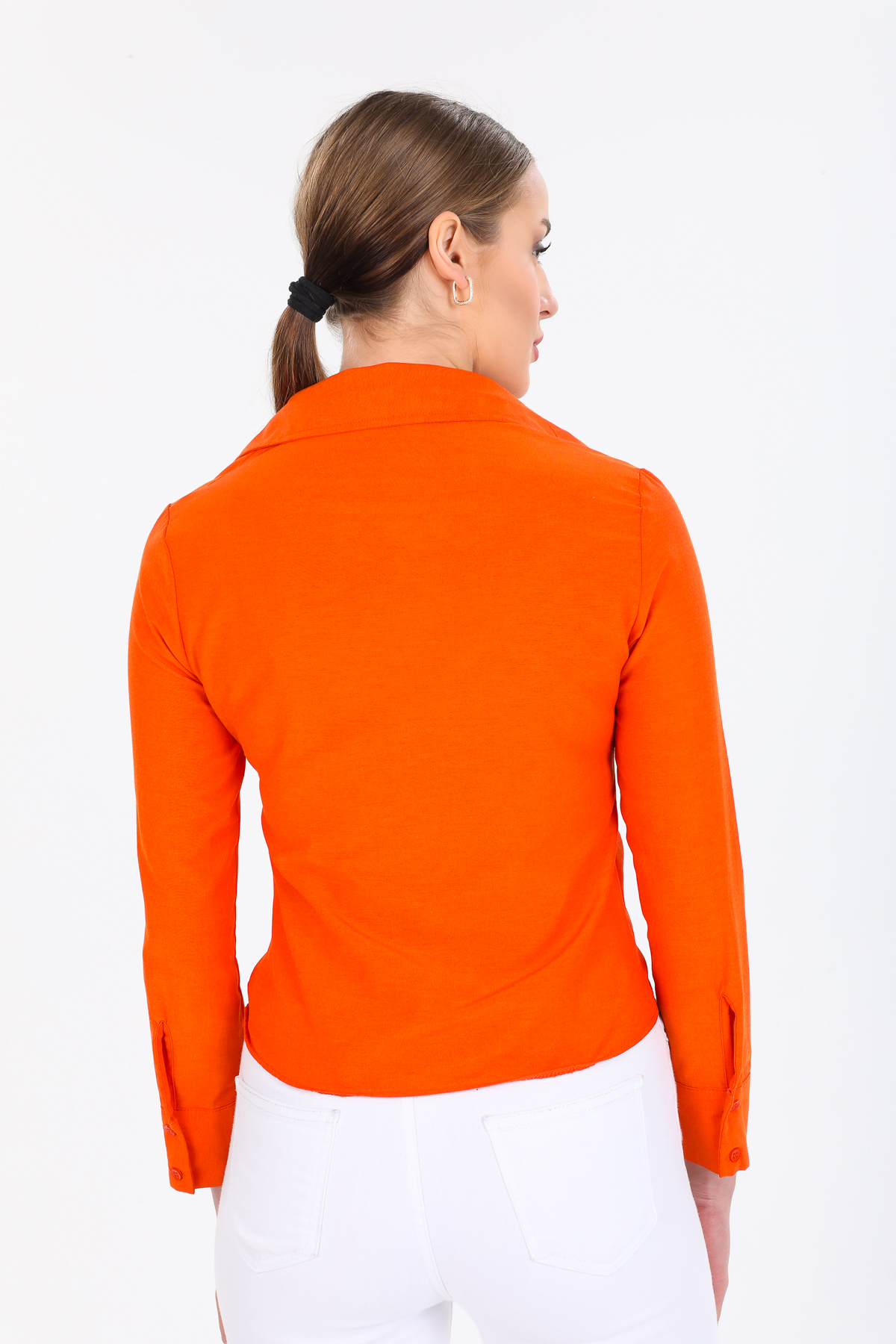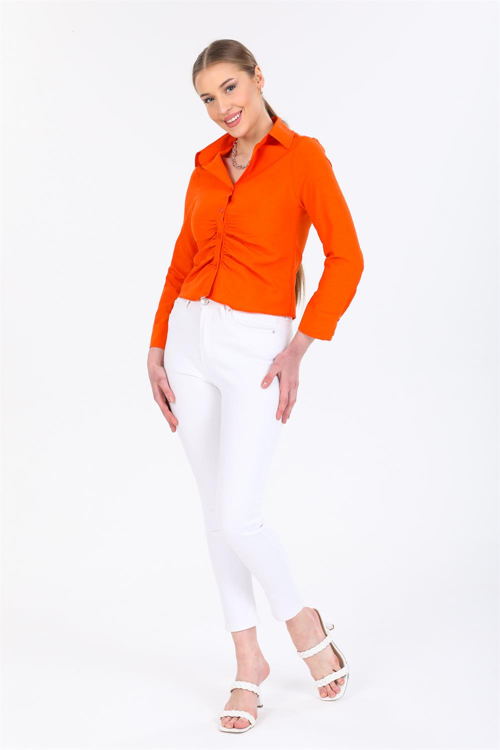 Önü Büzgülü Crop Gömlek