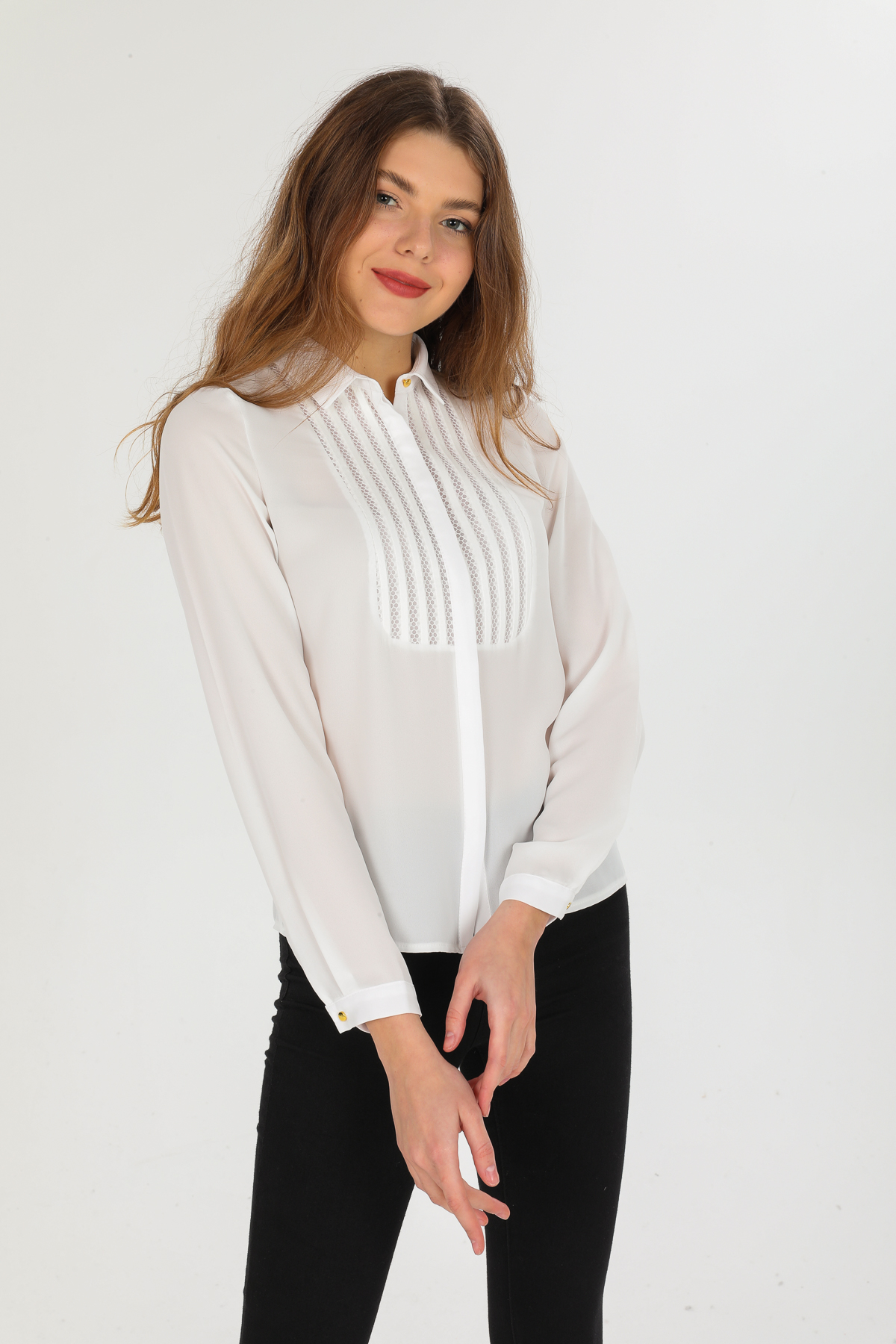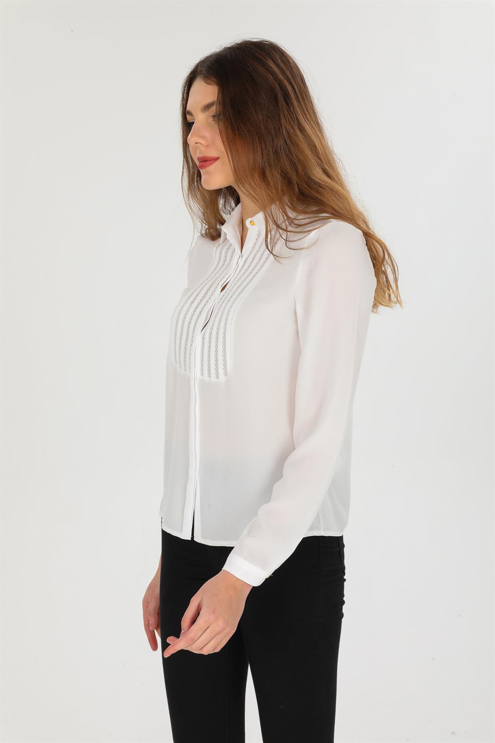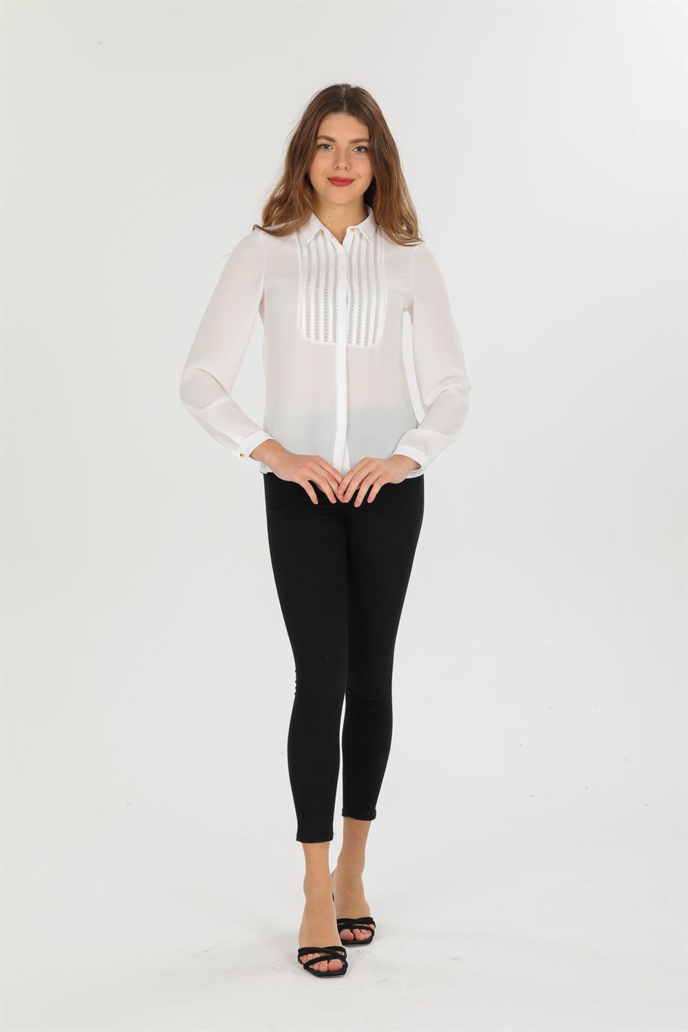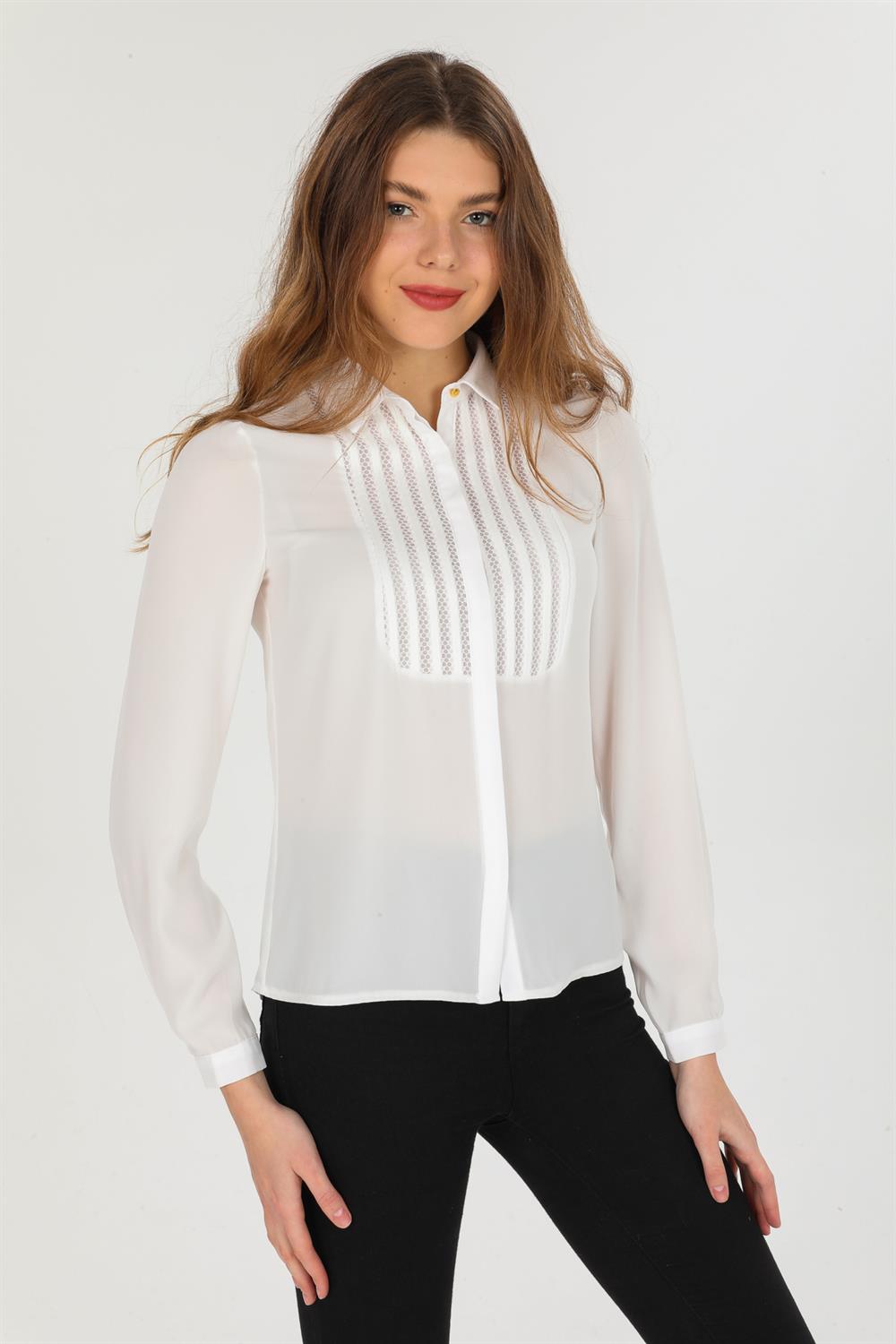 Önü Fırfırlı Dökümlü İç Göstermeyen Bluz Şık Gömlek