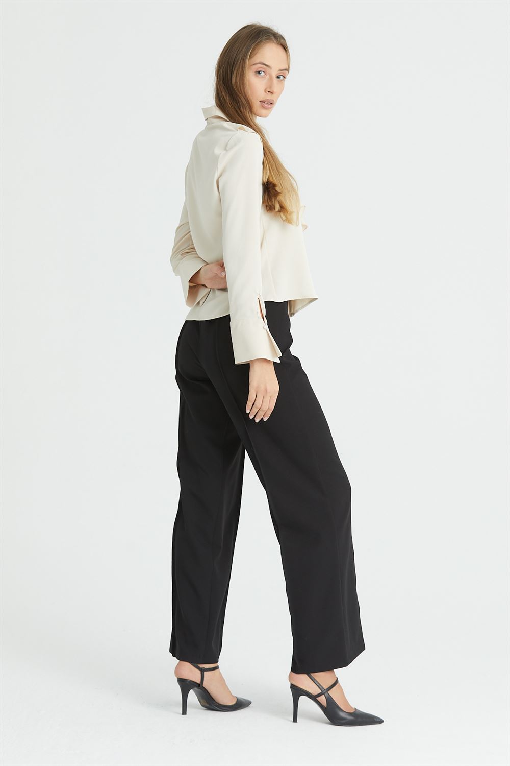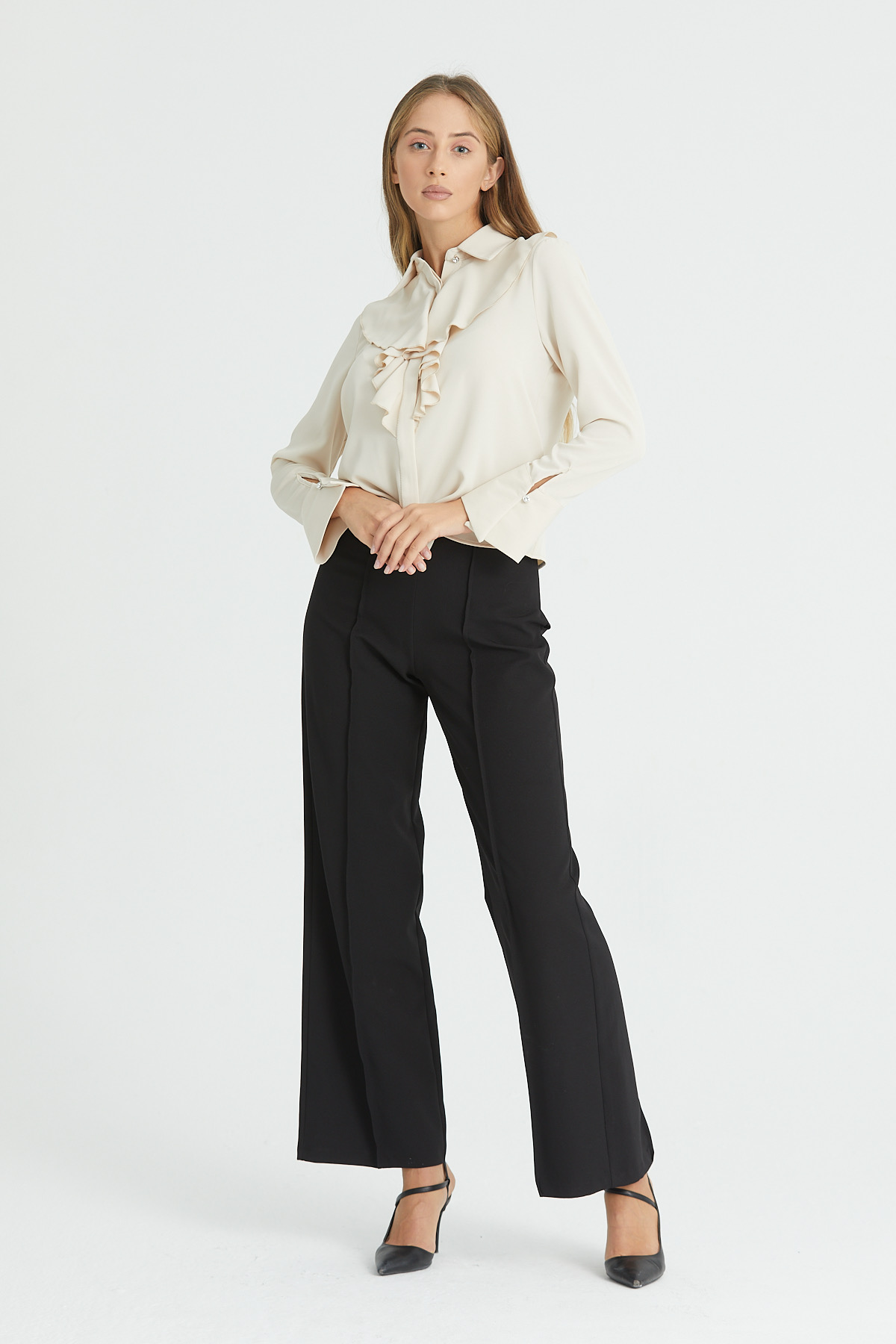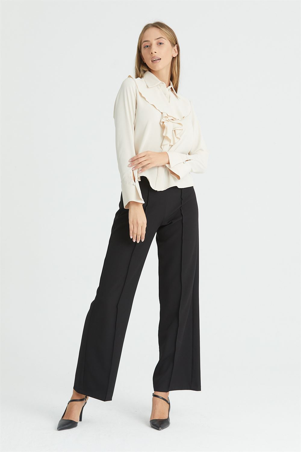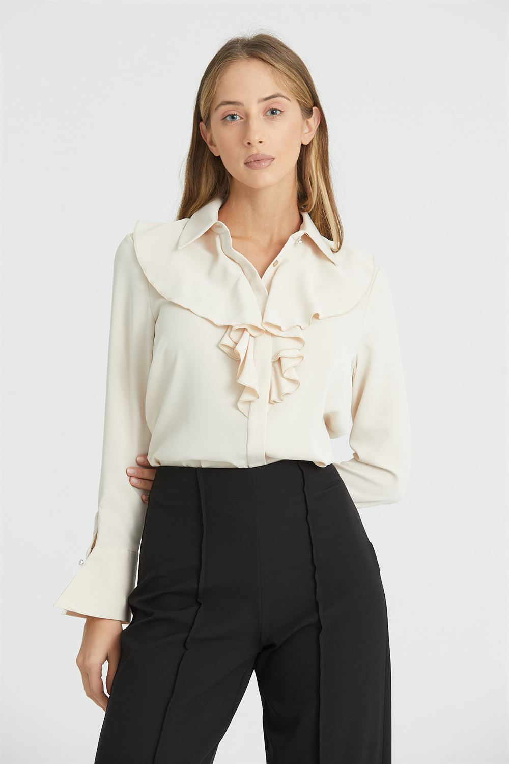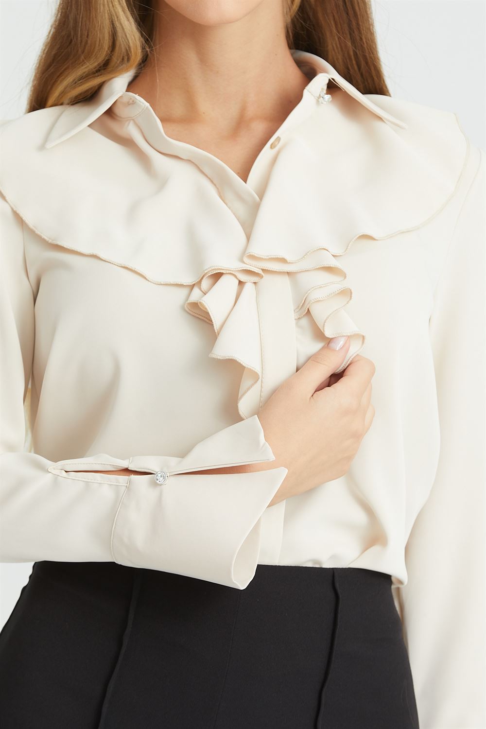 Önü Fırfırlı Dökümlü İç Göstermeyen Bluz Şık Gömlek