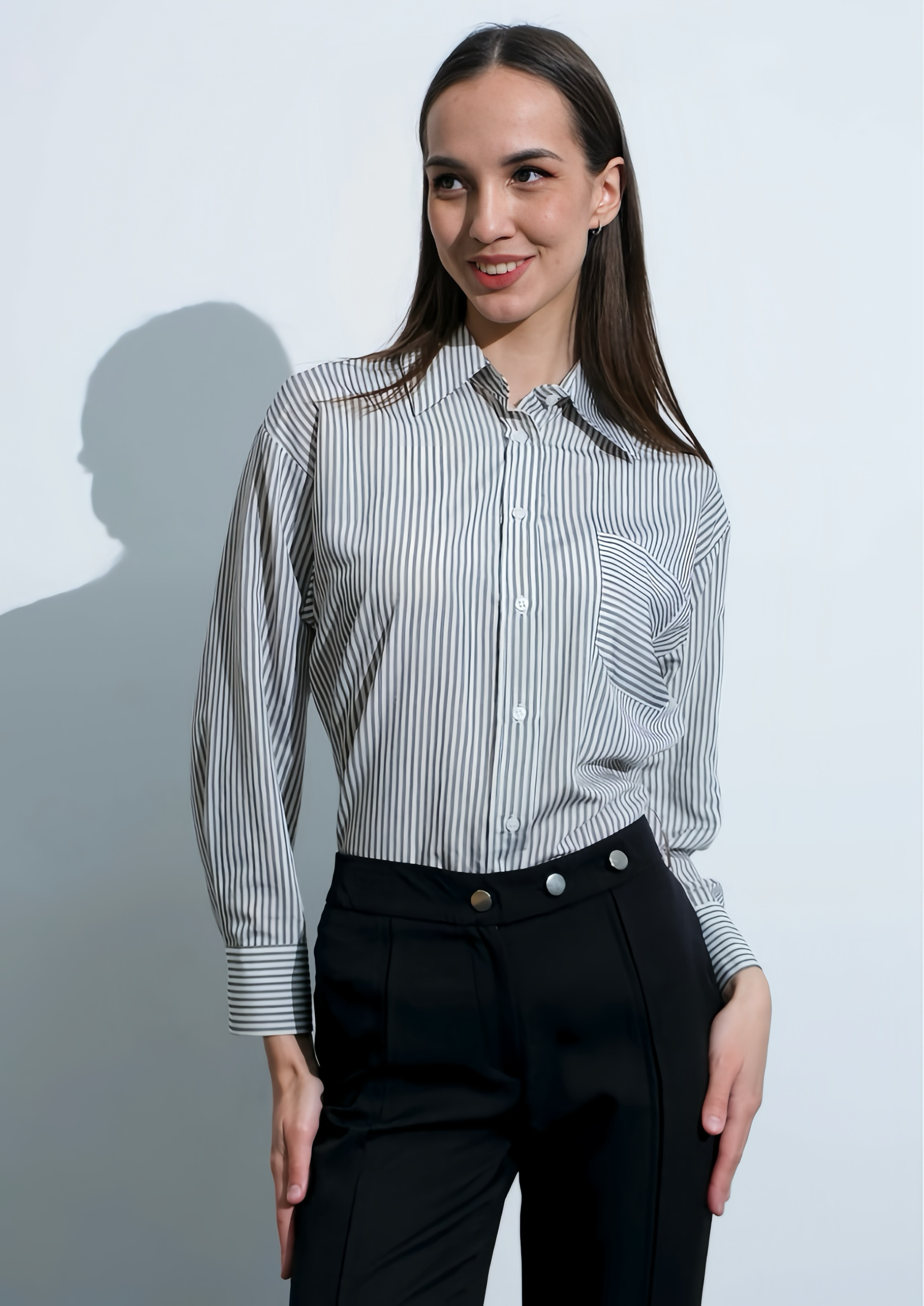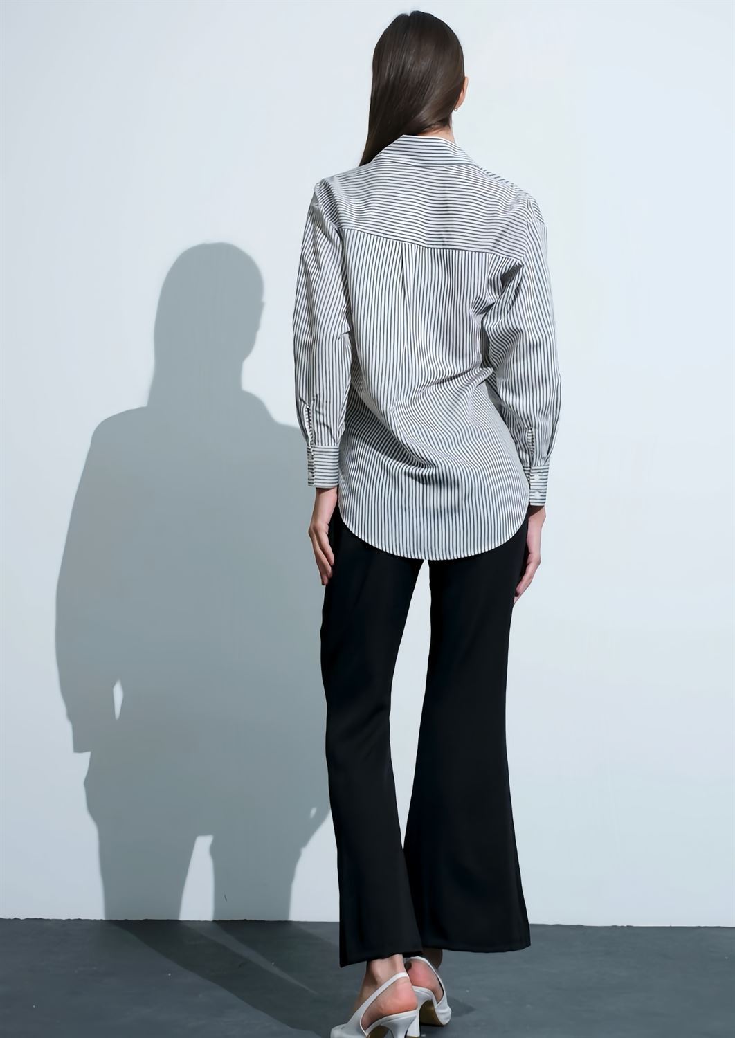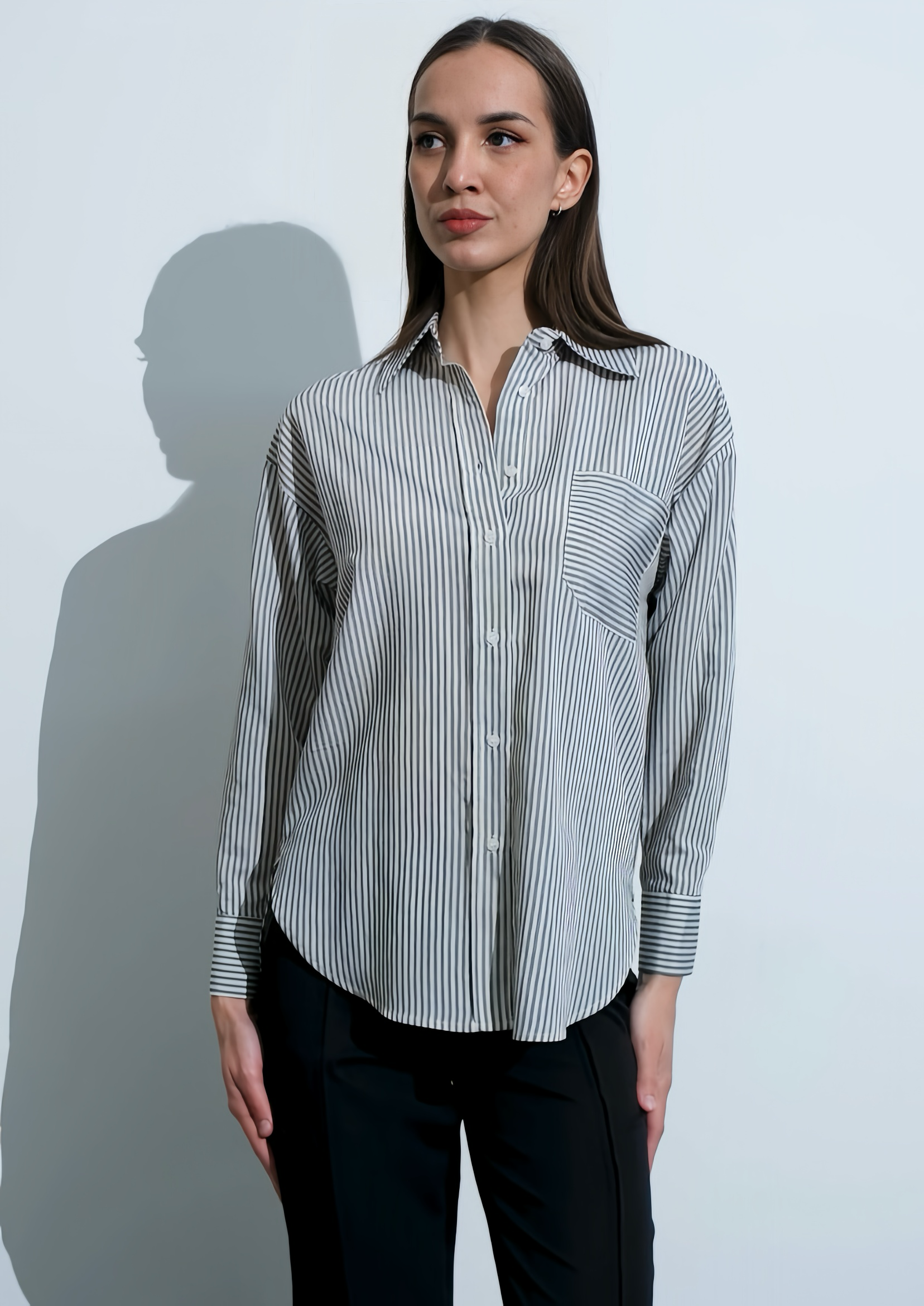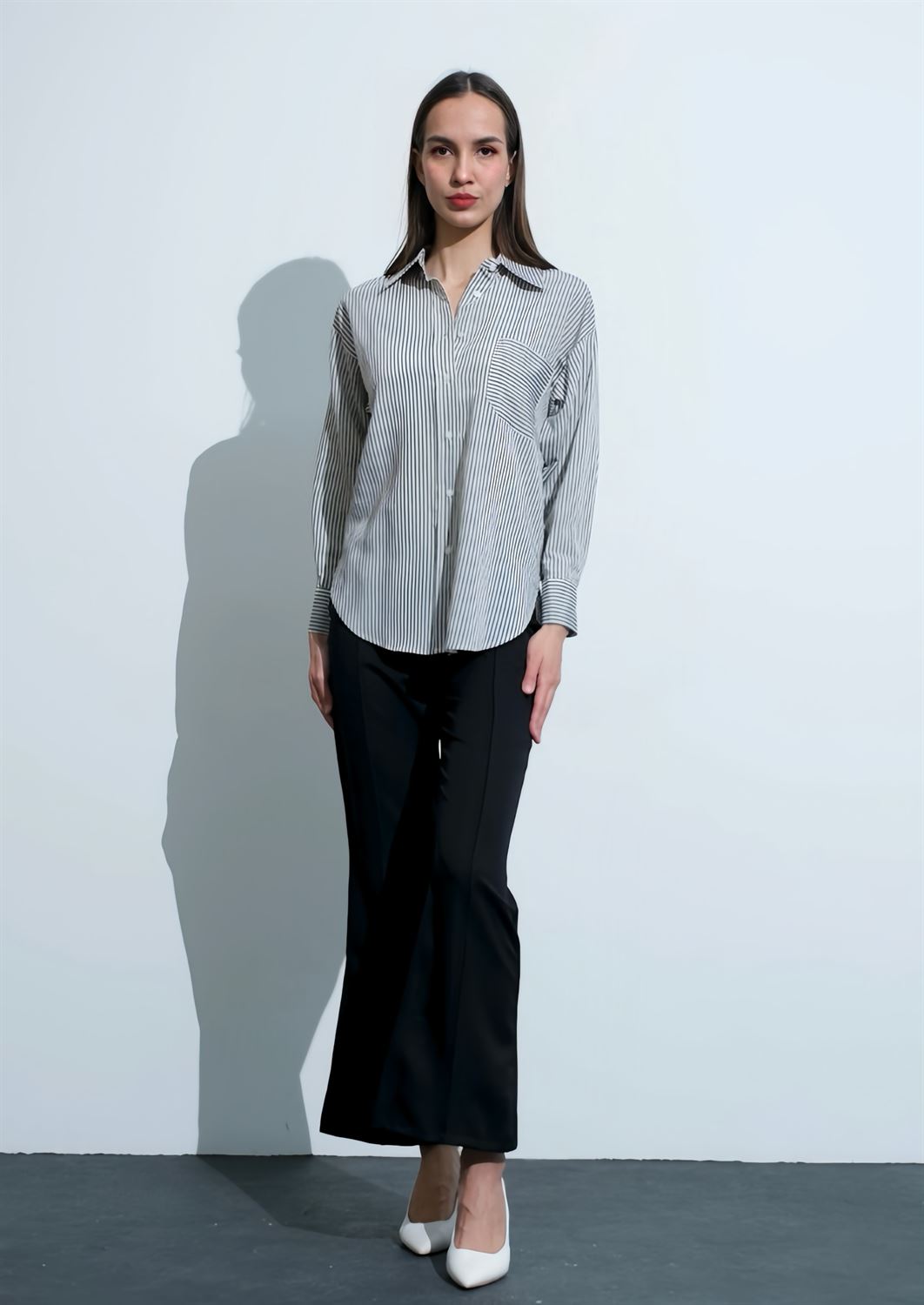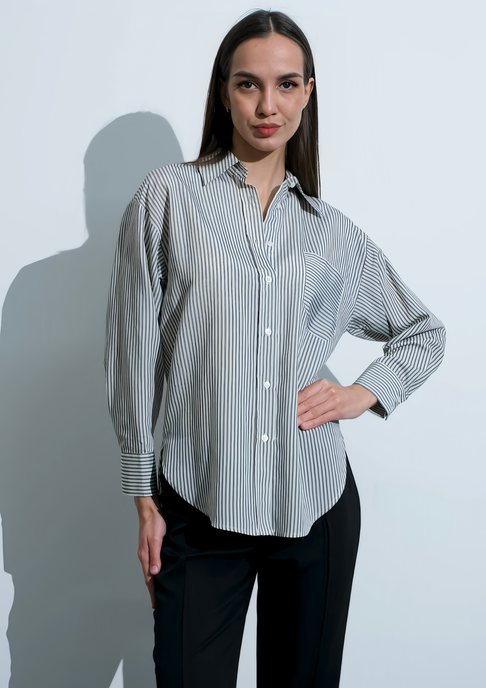 Önü Kısa Arkası Uzun Cepli Çizgili Kadın Gömleği