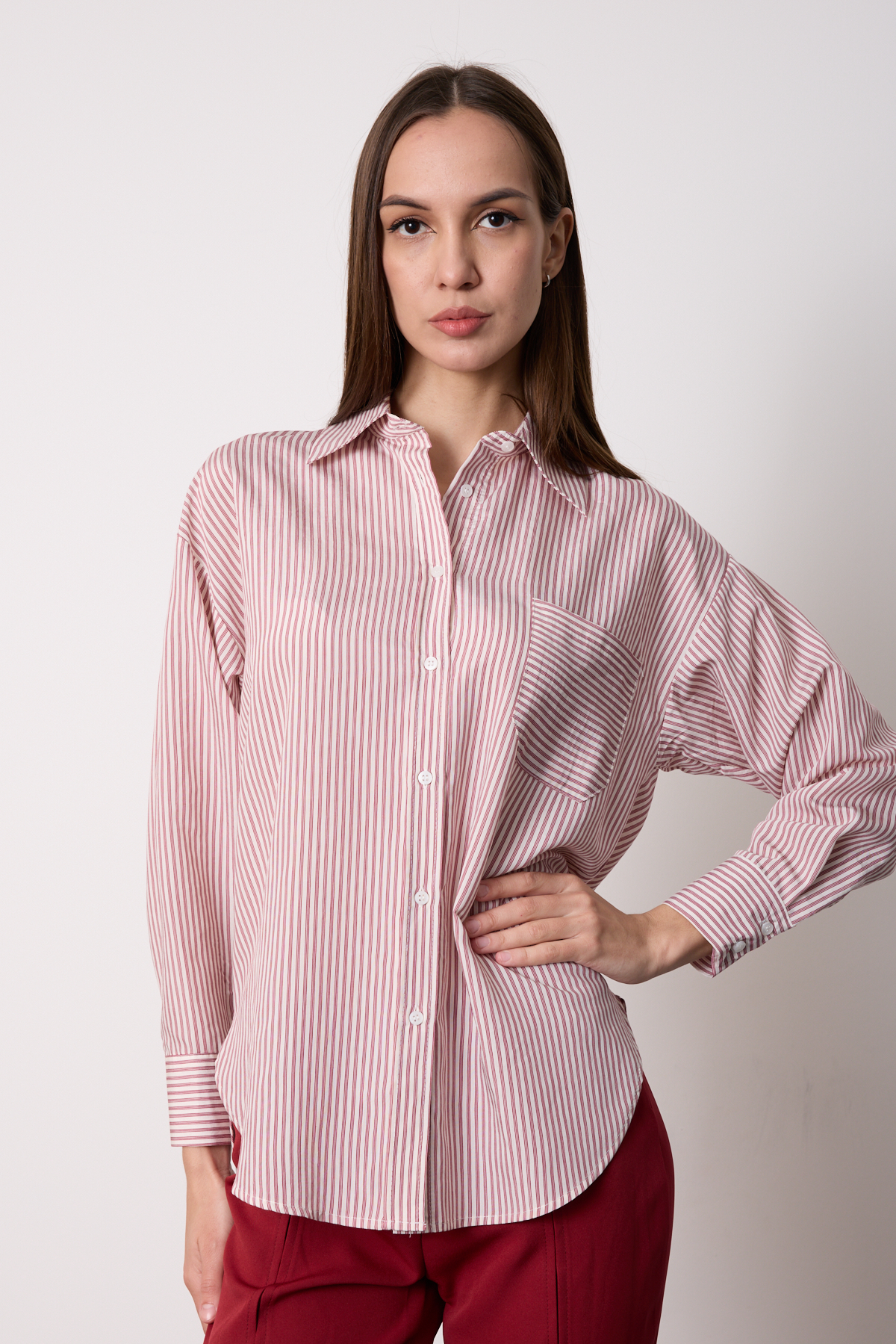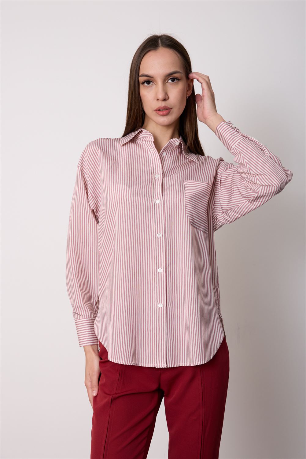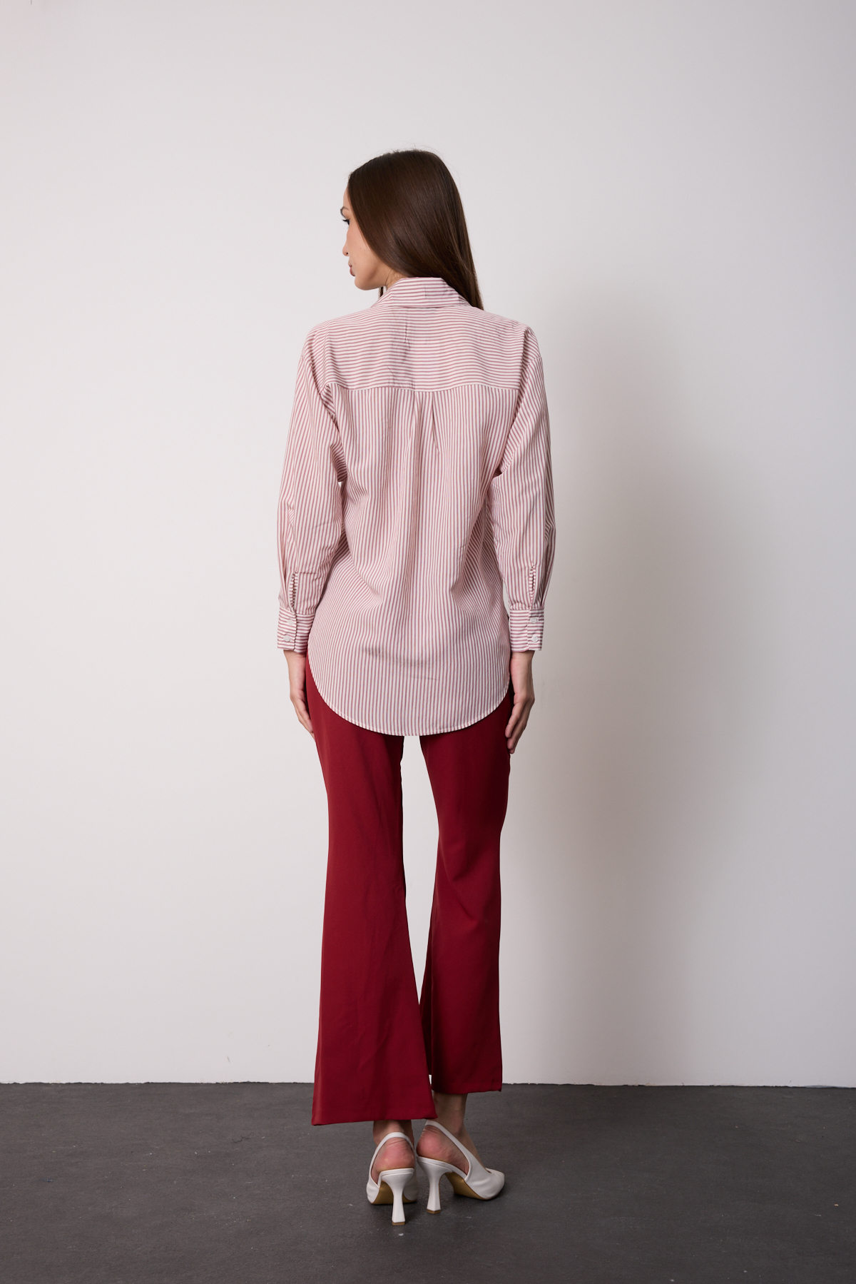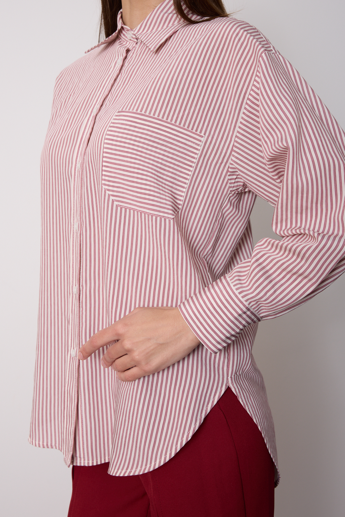 Önü Kısa Arkası Uzun Cepli Çizgili Kadın Gömleği