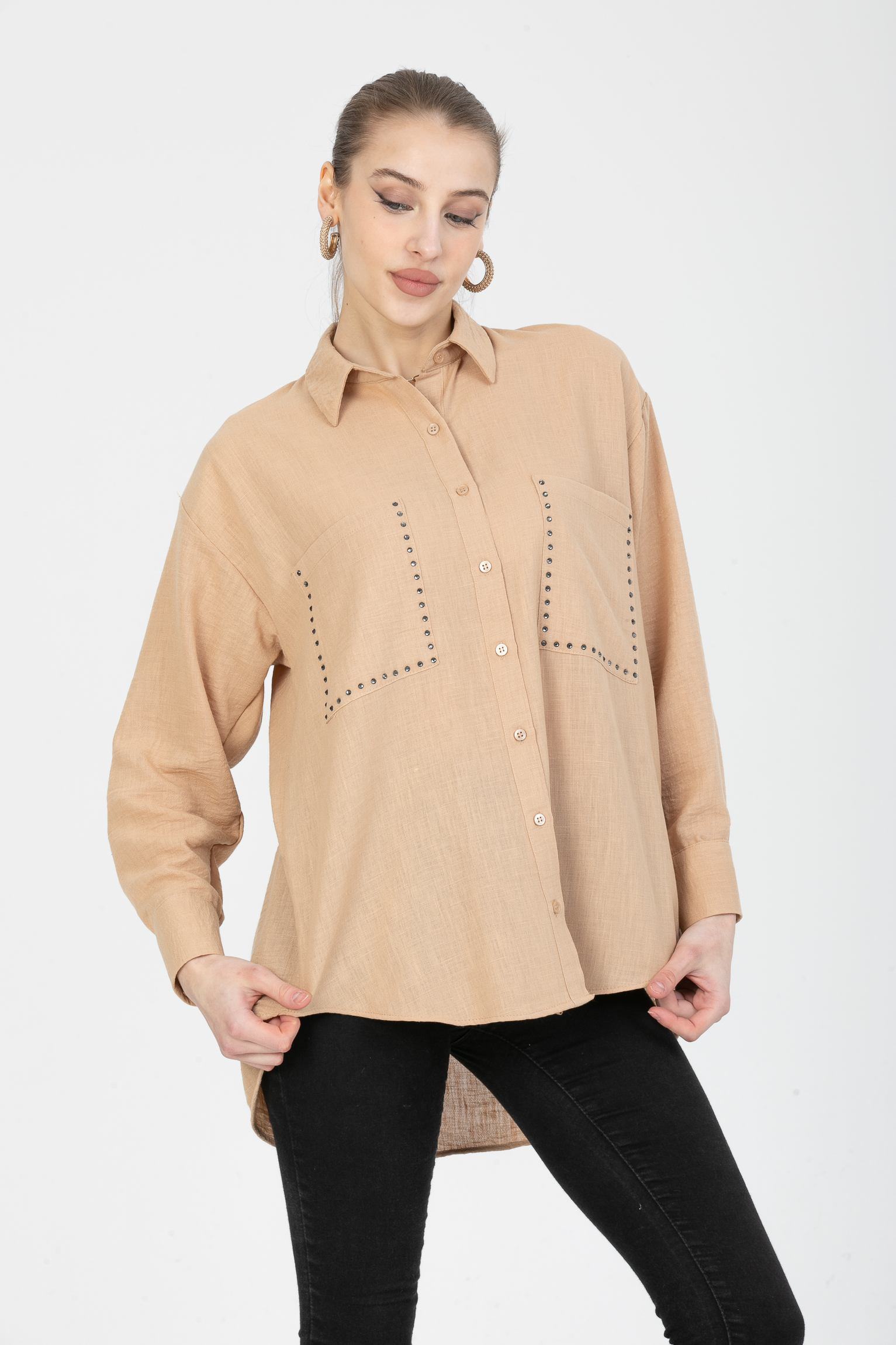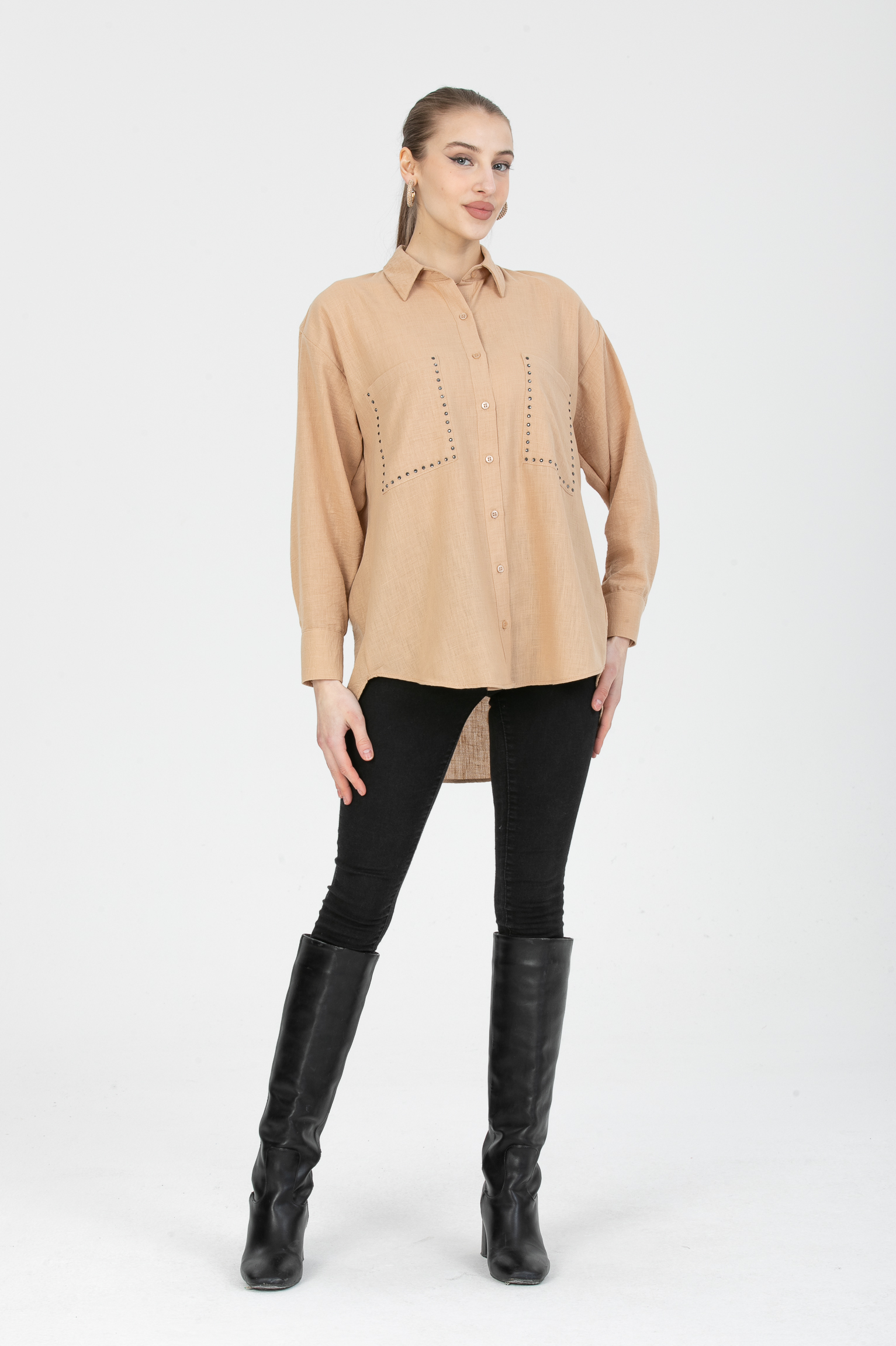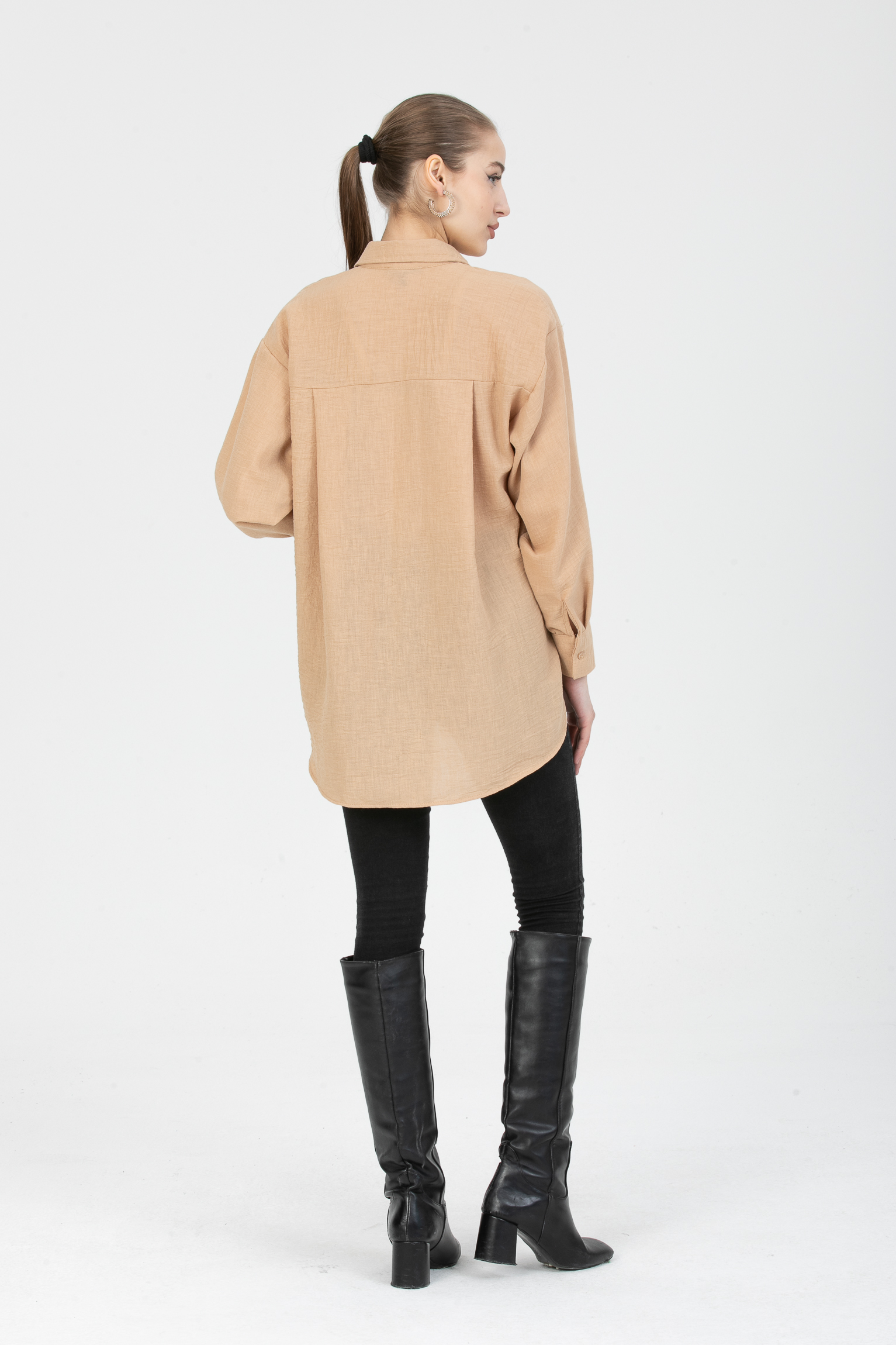 Kadın Tek Cepli Salaş Oversize Boyfriend Gömlek