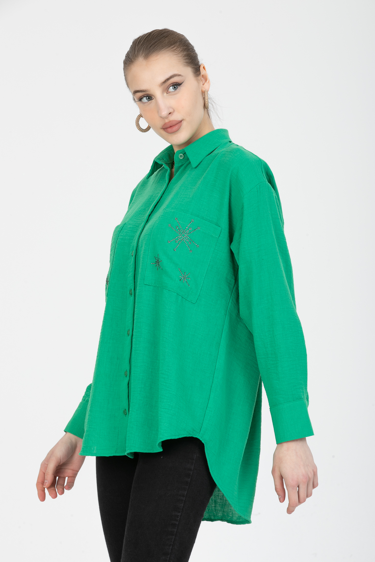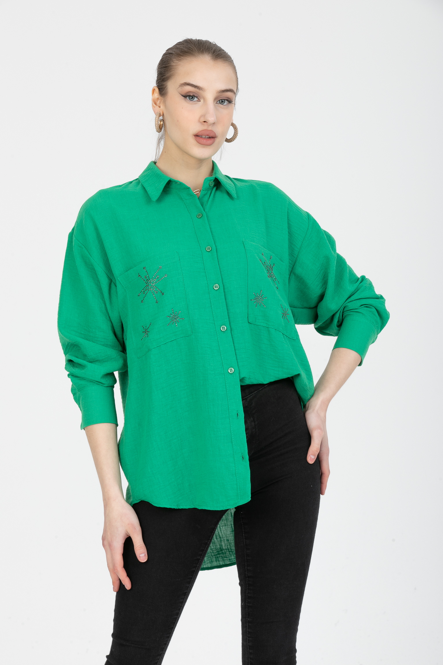 Kadın Tek Cepli Salaş Oversize Boyfriend Gömlek