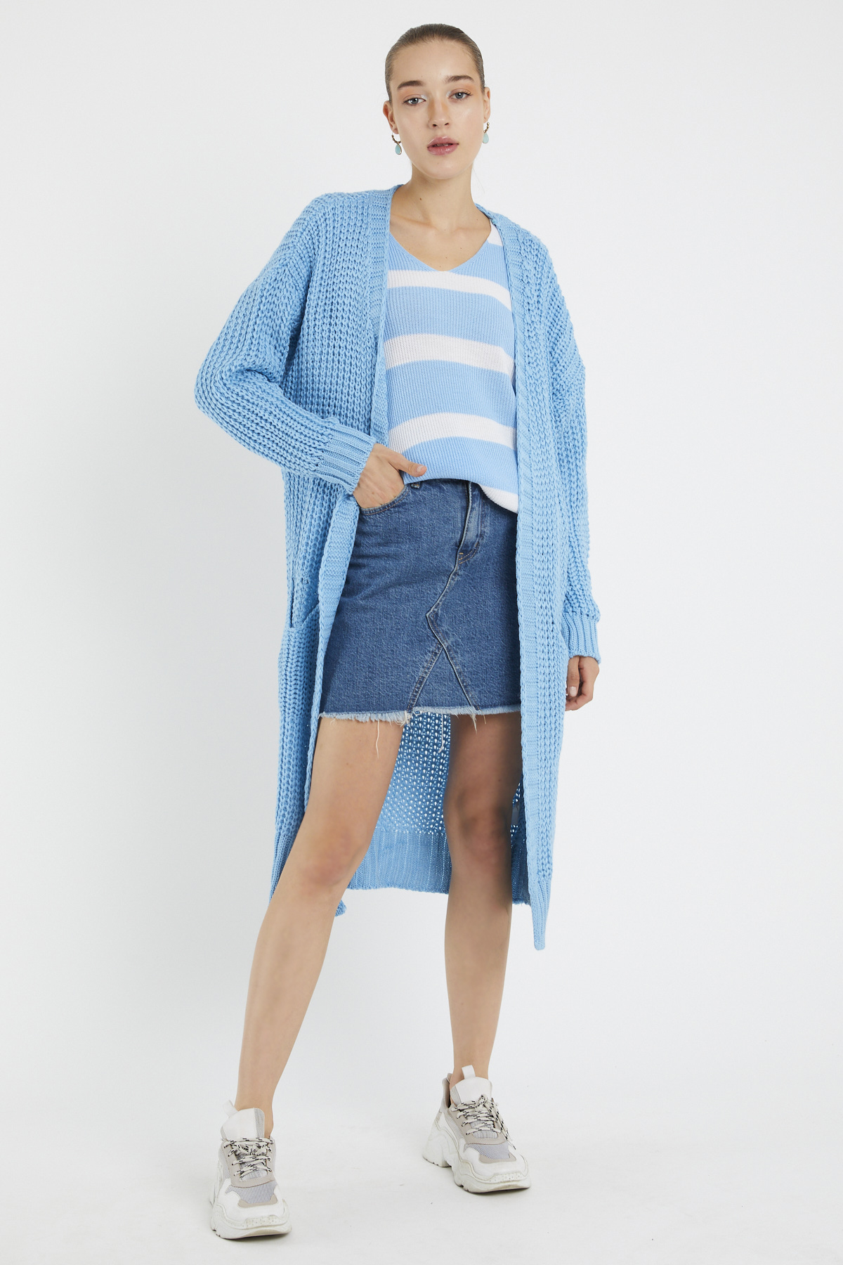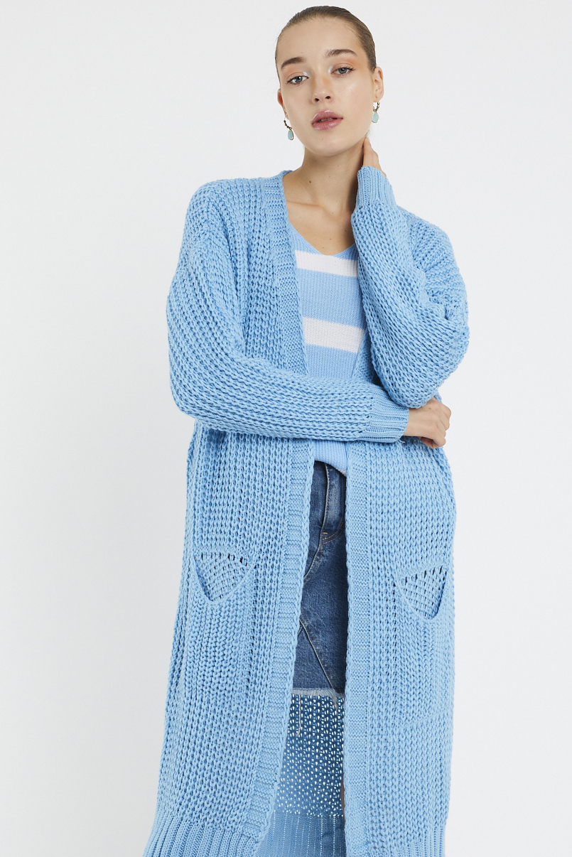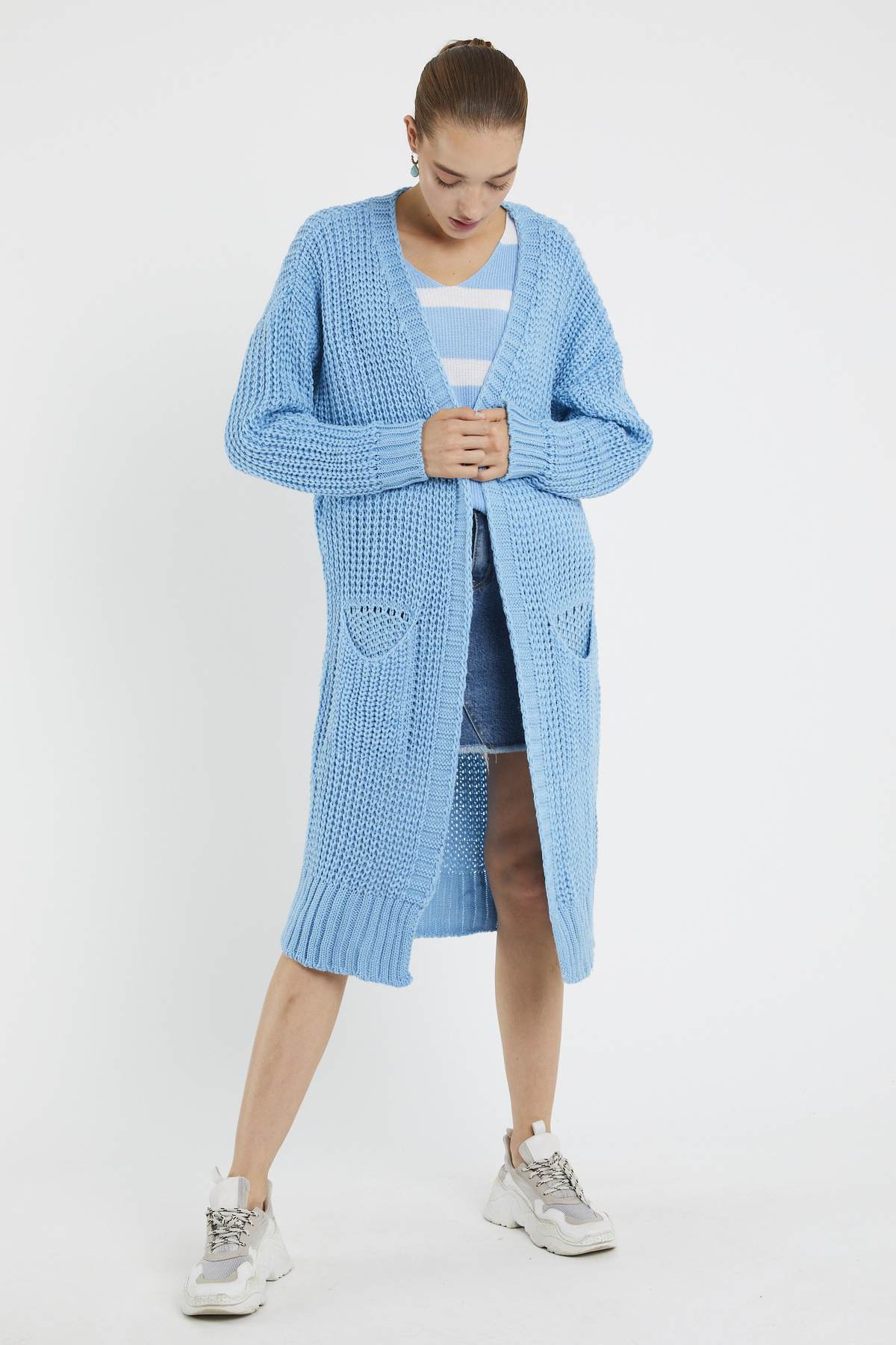 Ürün Özellikleri: Örgü model, cep detaylı, bol kalıp, uzun kollu hırka.