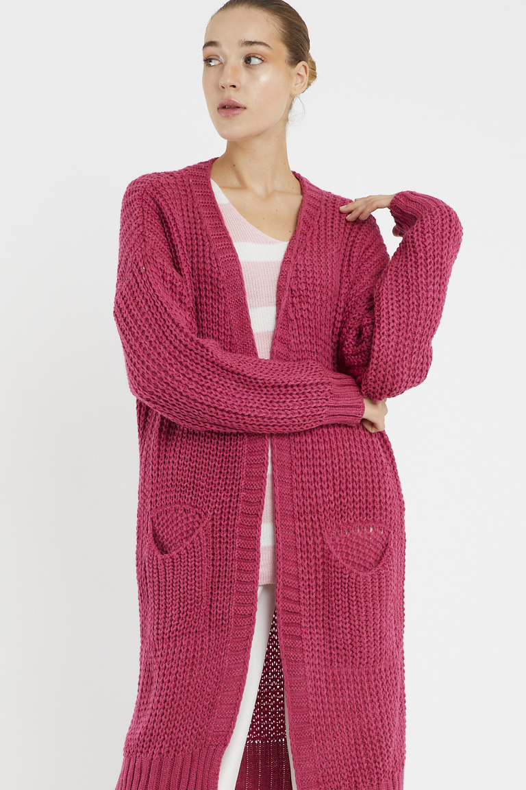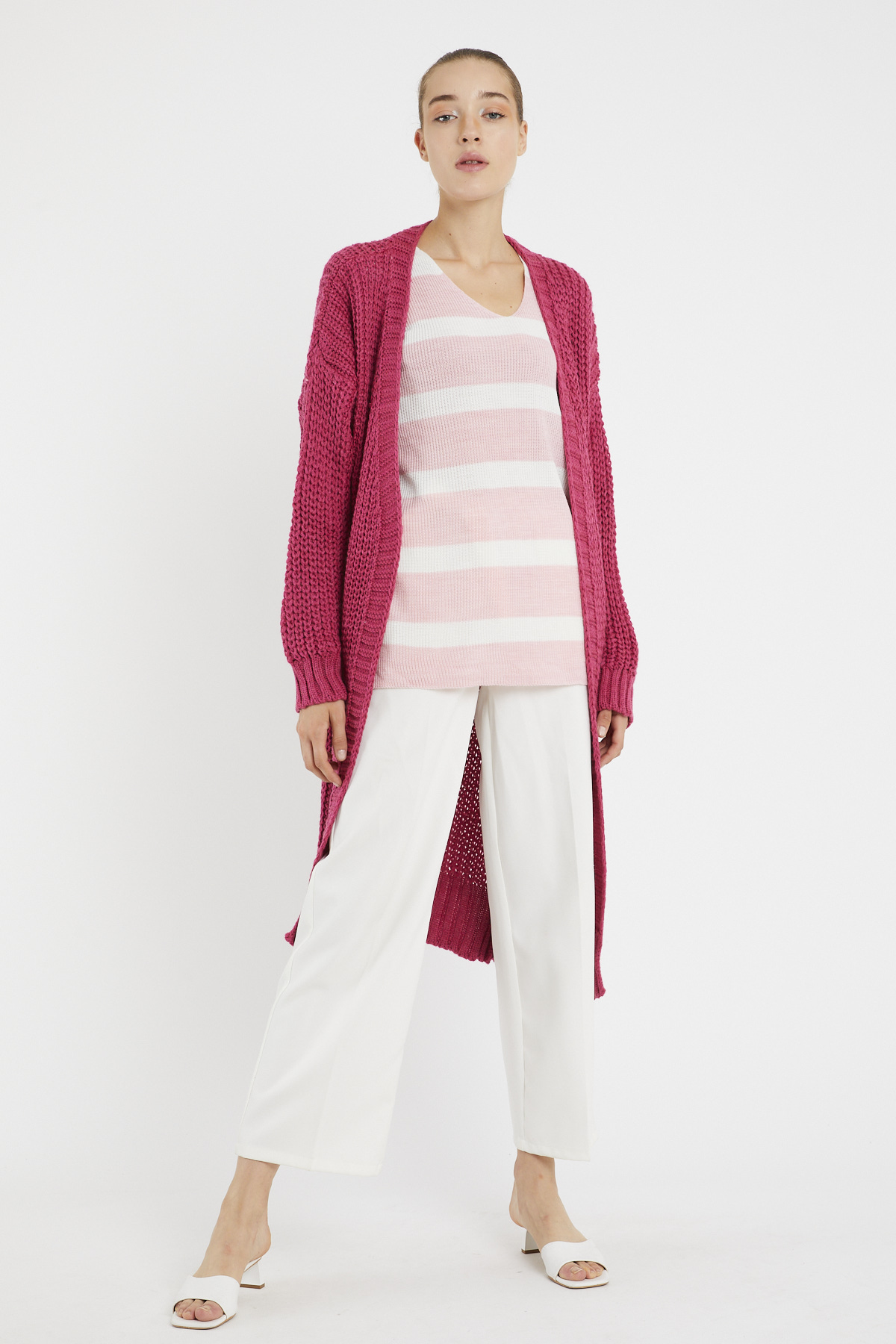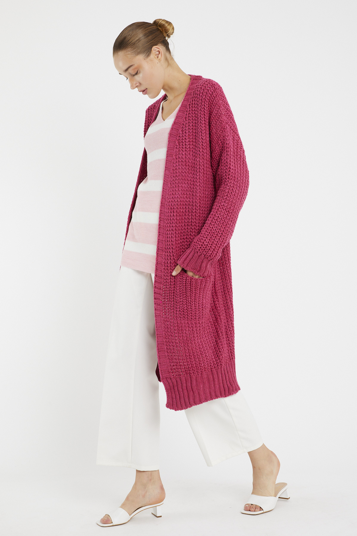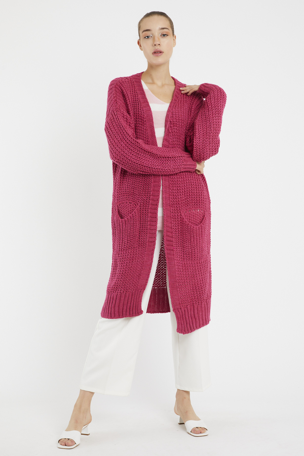 Ürün Özellikleri: Örgü model, cep detaylı, bol kalıp, uzun kollu hırka.