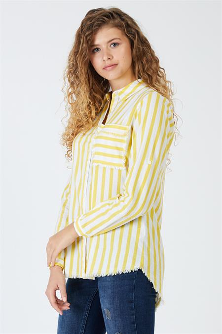 Sarı Çizgili Püskül Detaylı Beyaz Gömlek