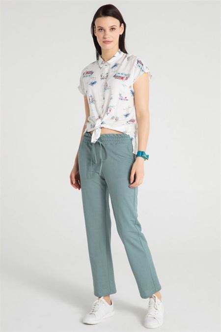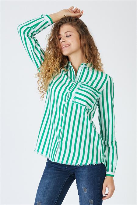 Yeşil Çizgili Püskül Detaylı Beyaz Gömlek