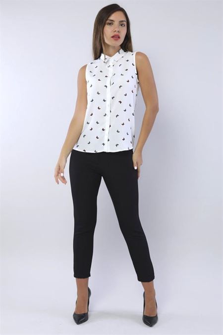 Dekolteli Omuz Detaylı Beyaz Bluz