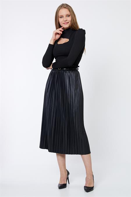 Kol Detaylı Yarım Balıkçı Siyah Bluz