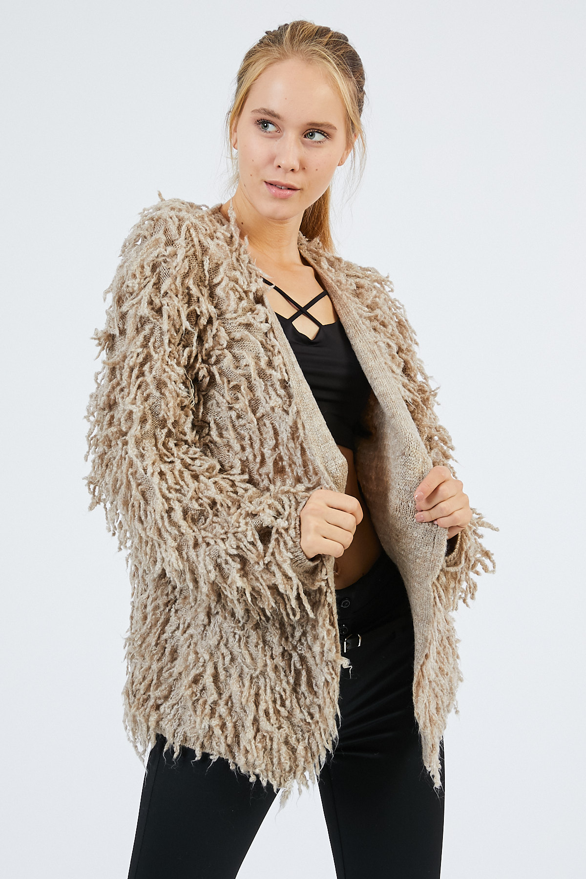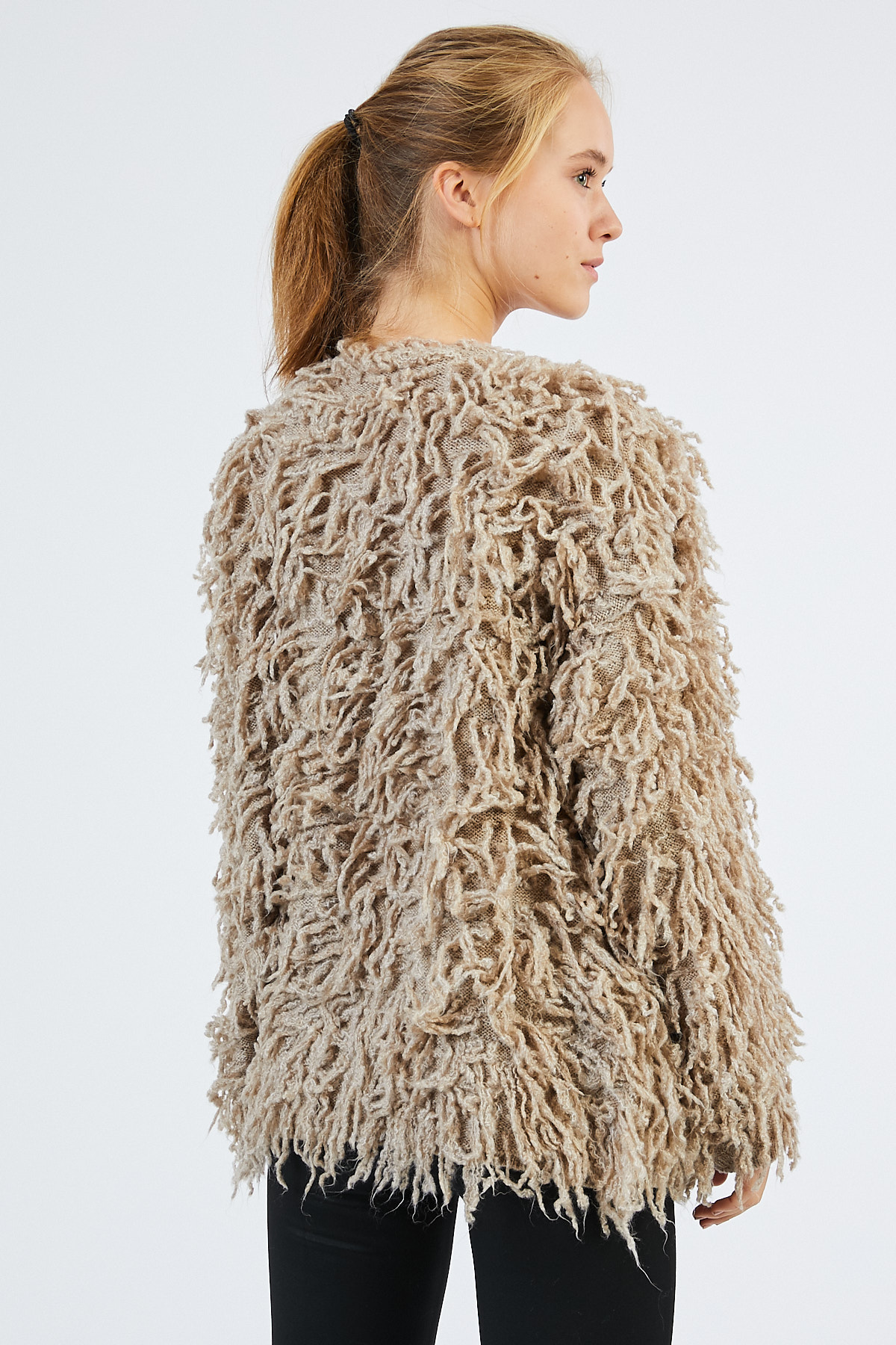 Ürün Özellikleri:Oversize, suni kürk görünümlü, uzun kollu hırka.