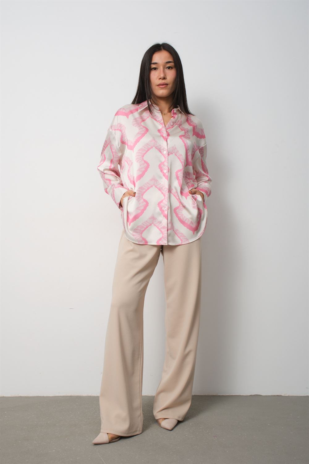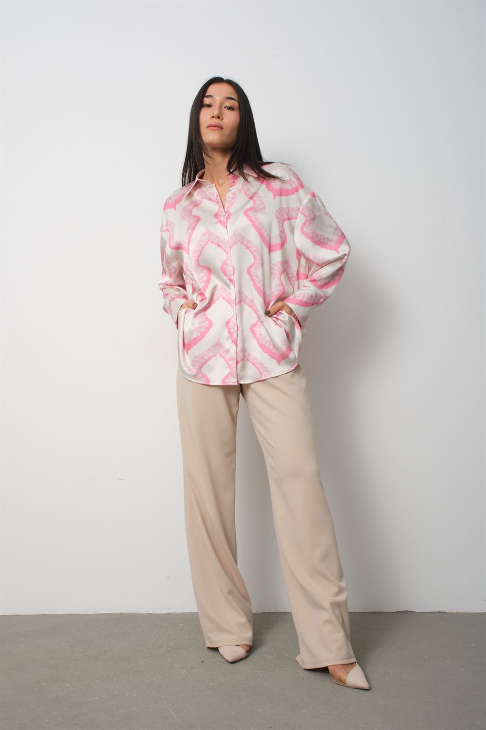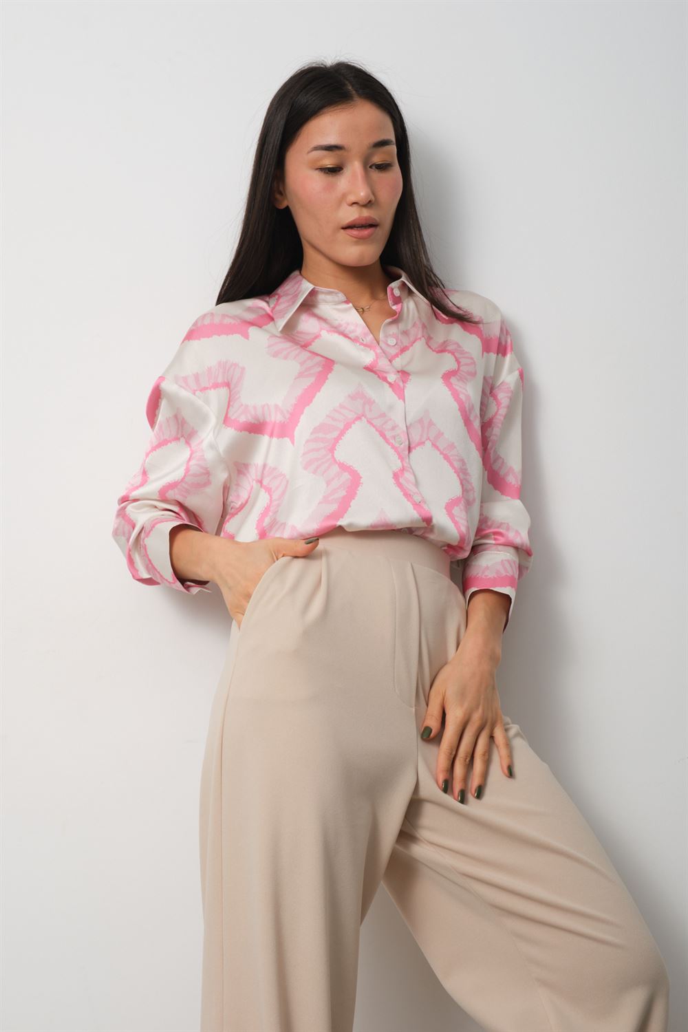 Oversize Kalıp Desenli Saten Kadın Gömleği