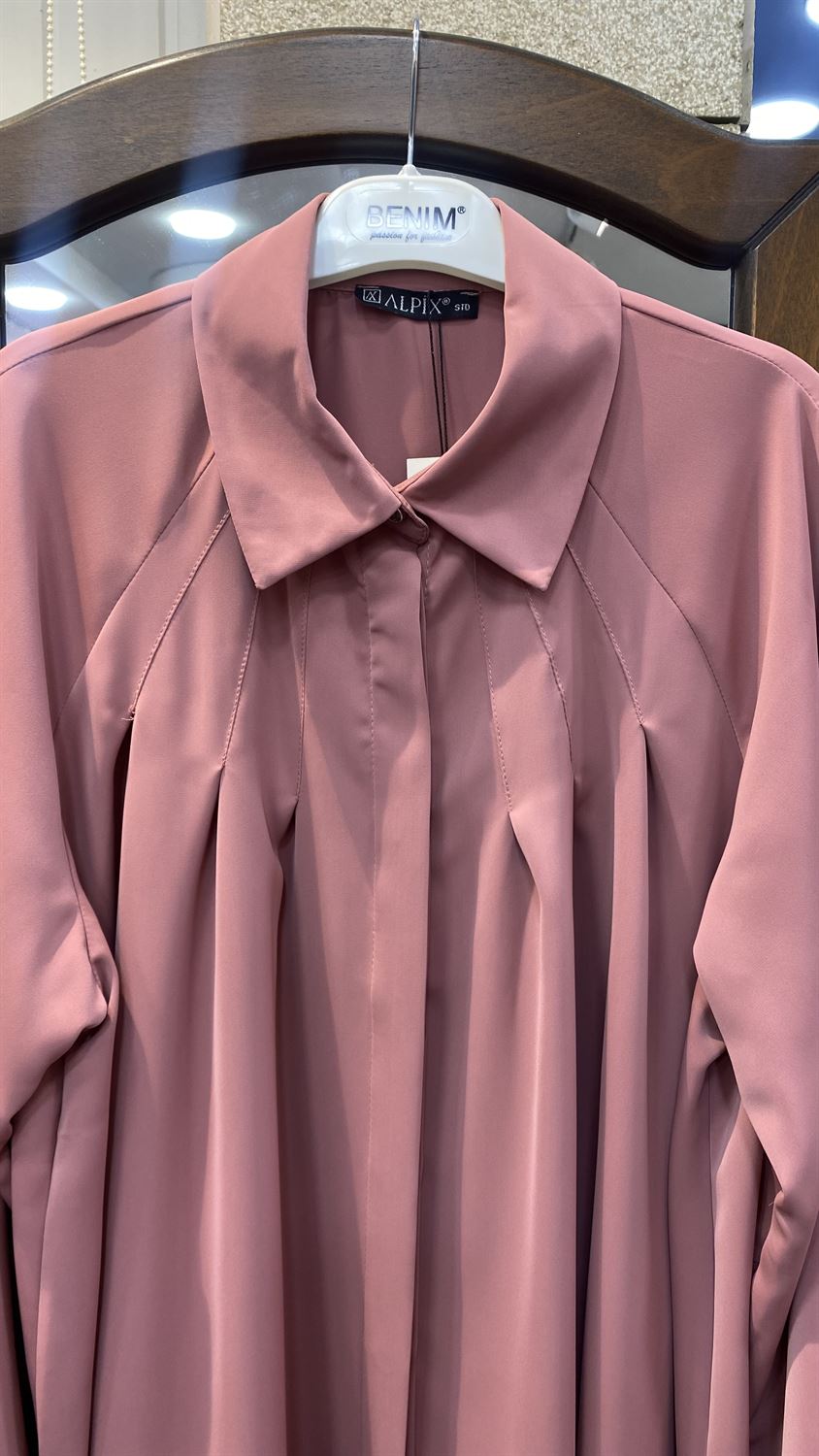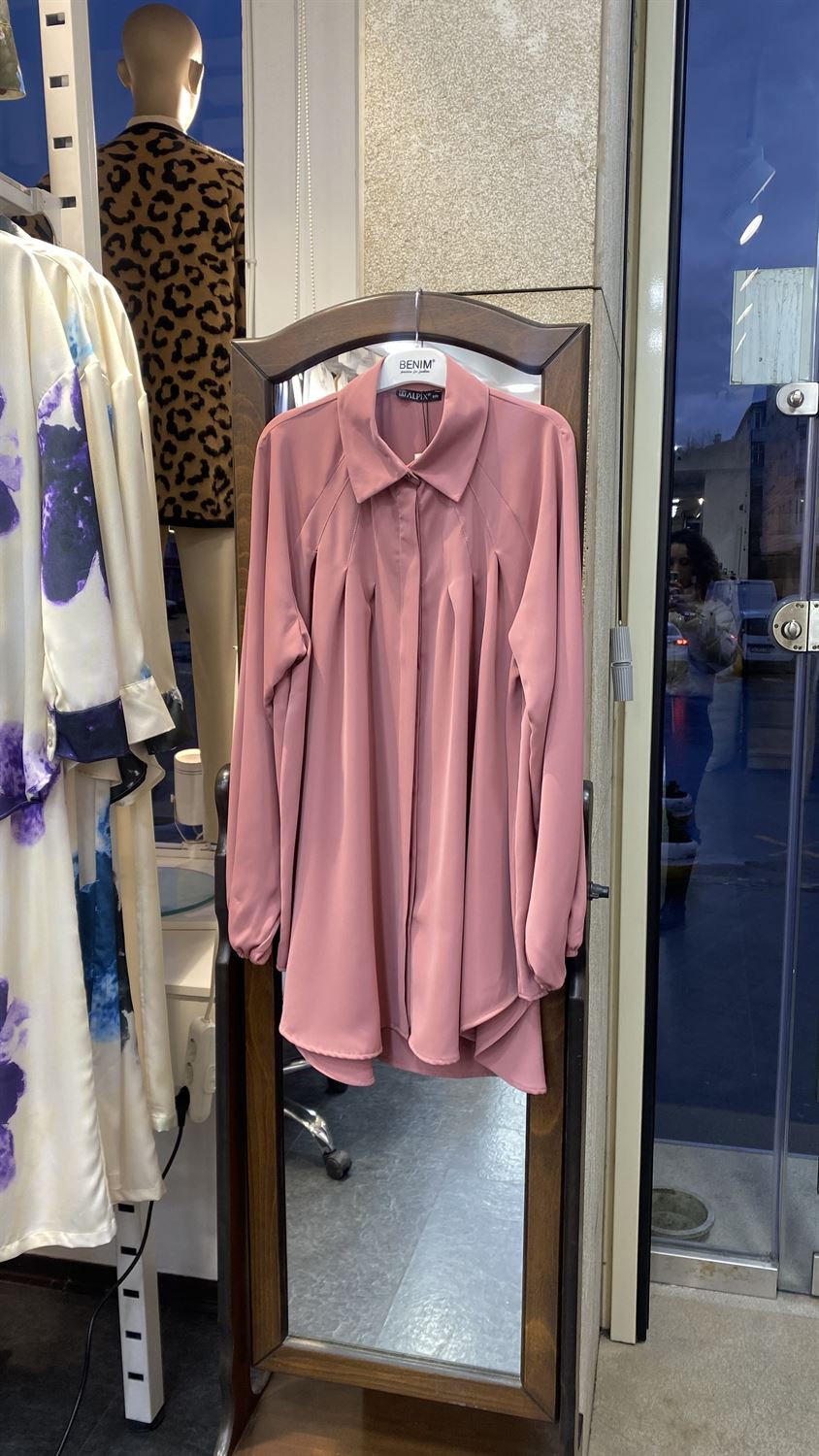Oversize Kesim Balon Kol Uzun Piliseli Şık Kadın Tunik Gömleği
