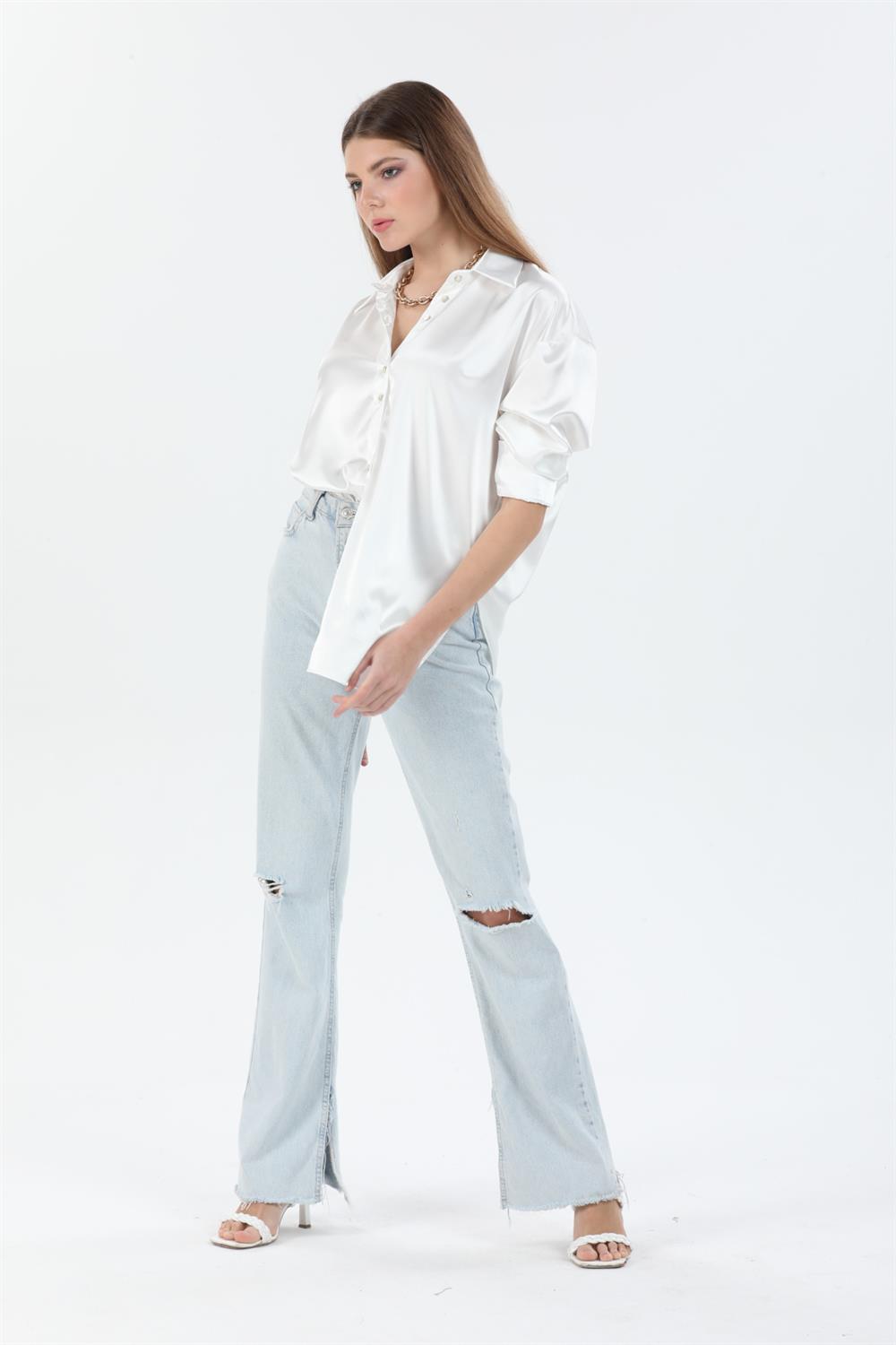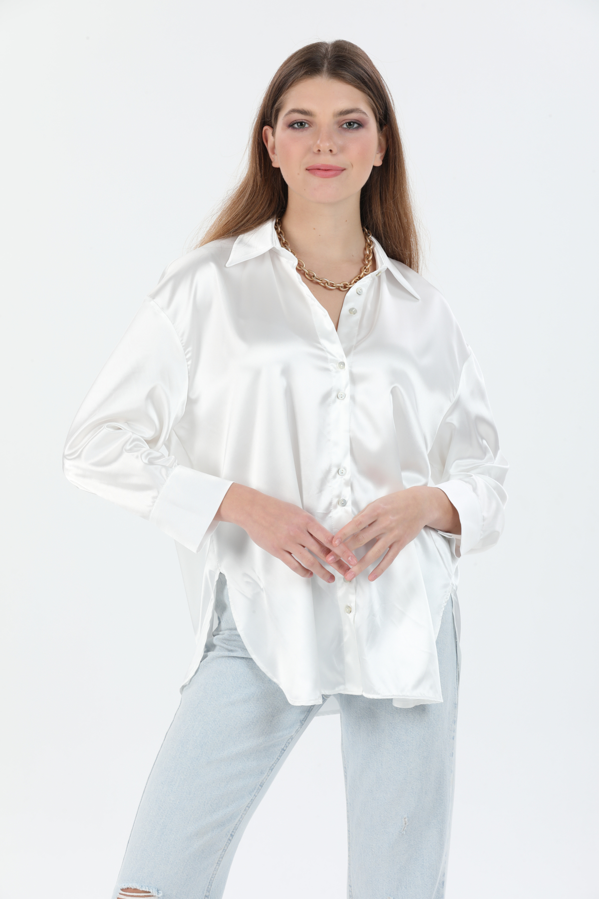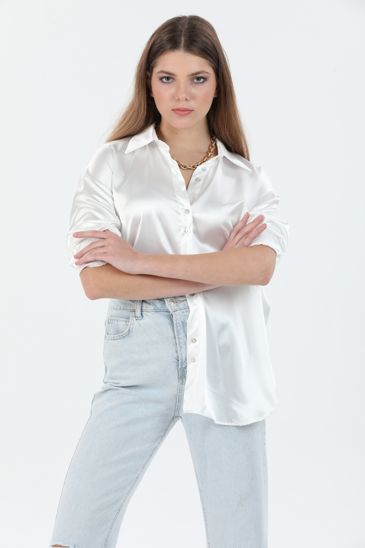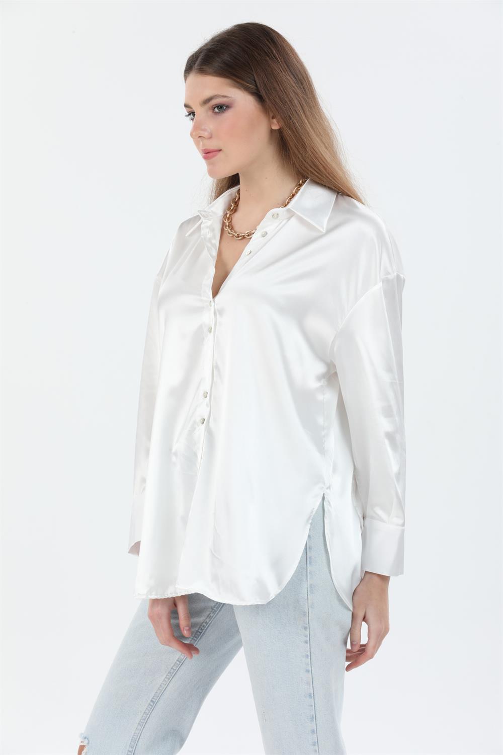 Kadın Basic Gizli Düğme Özellikli Gömlek