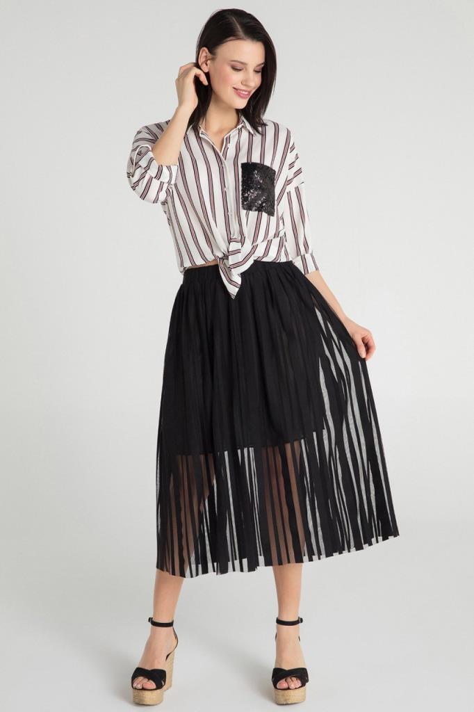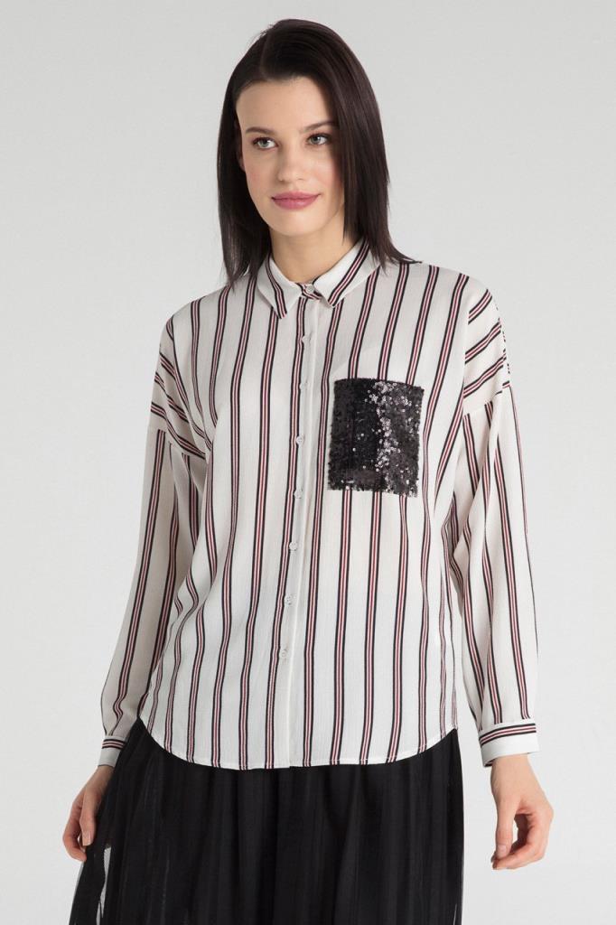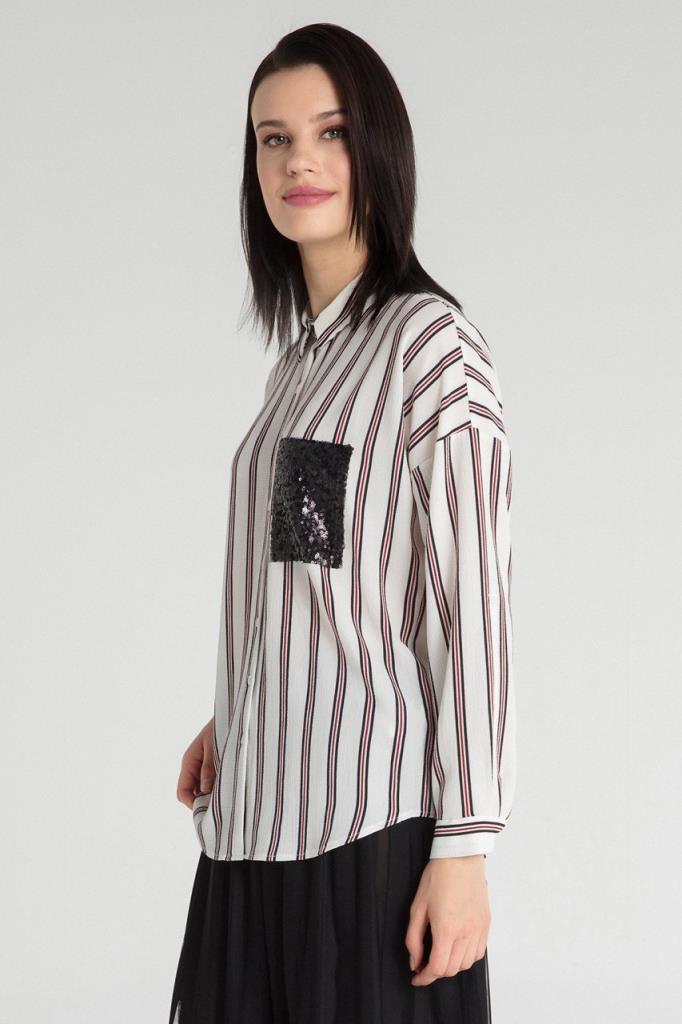 Ürün Özellikleri: Klasik yaka, beyaz düğmeli, süslemeli cep detaylı, tam kalıp, uzun kollu gömlek.