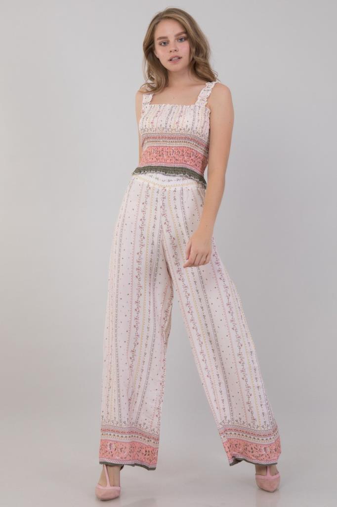 Ürün Özellikleri:Askılı büstiyer ve yüksek bel geniş paça pantolon takımı.