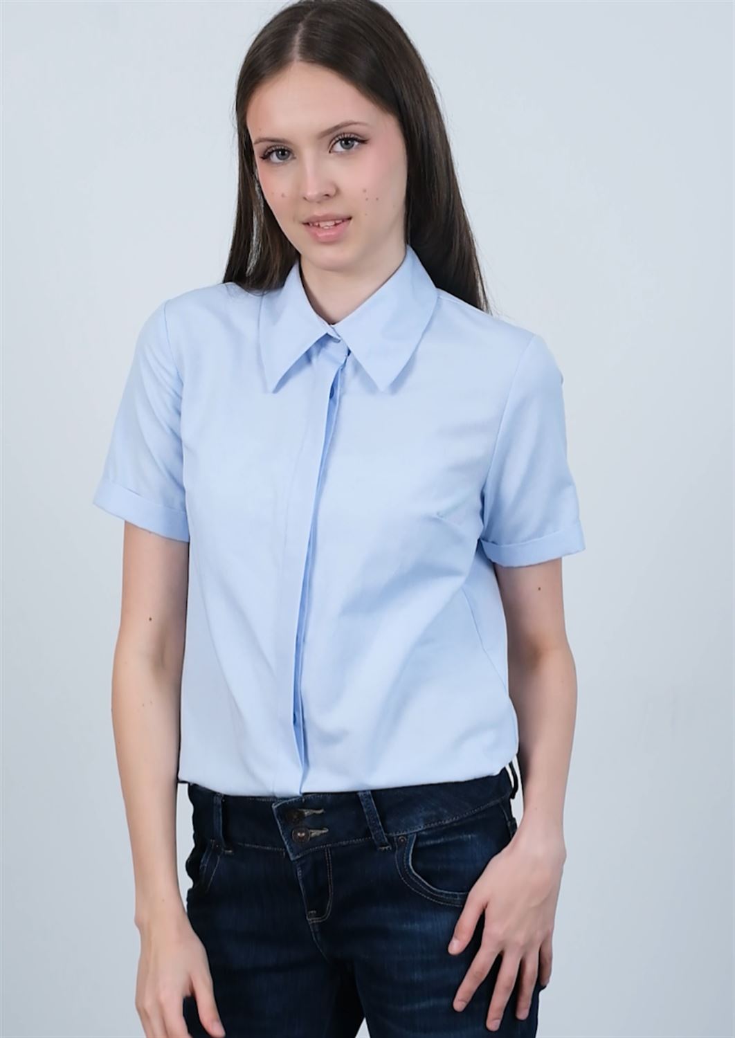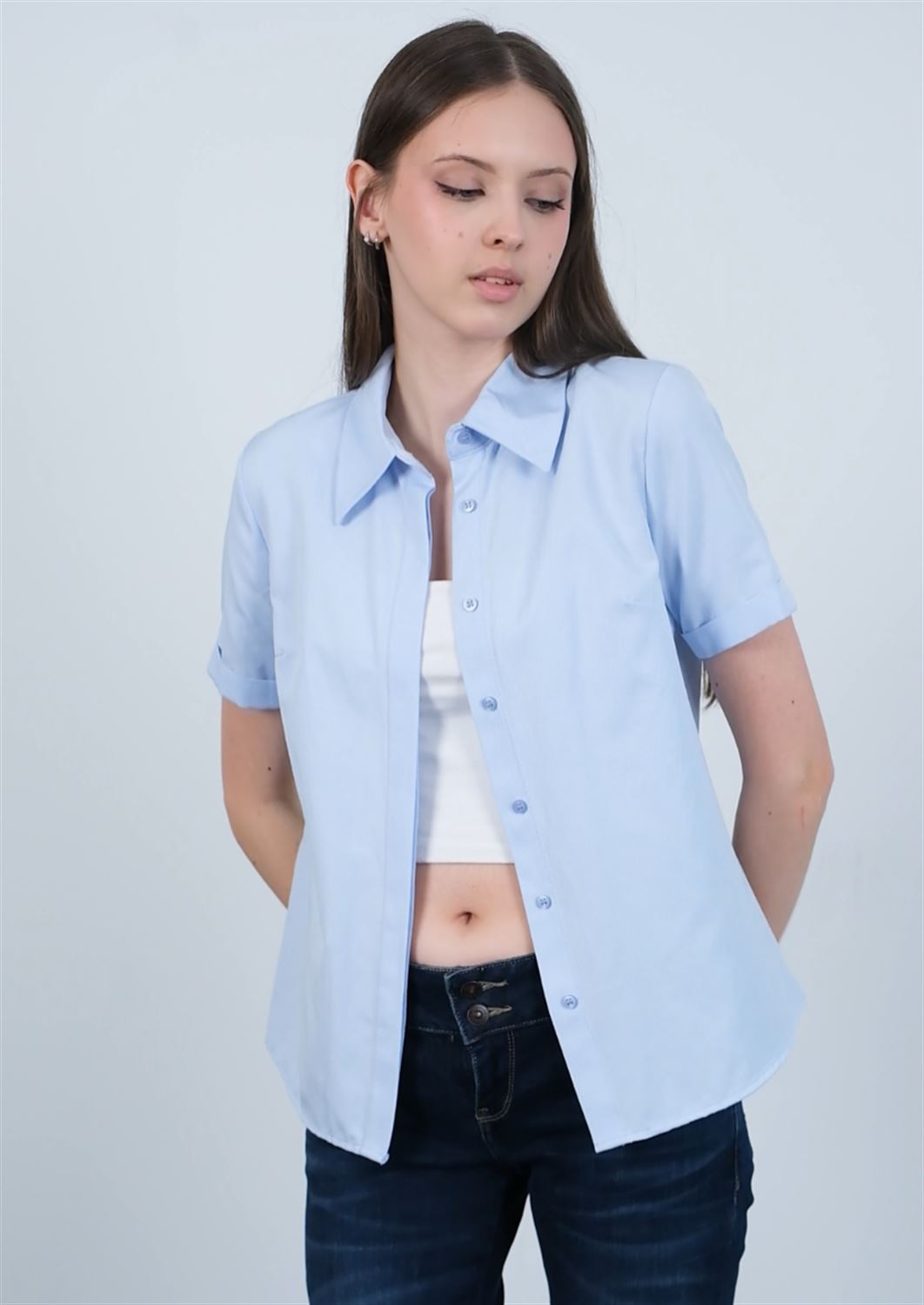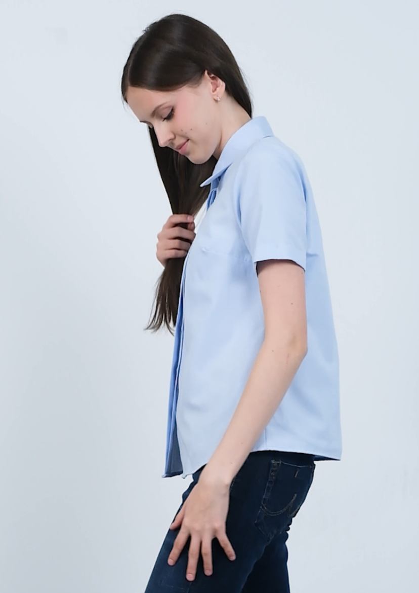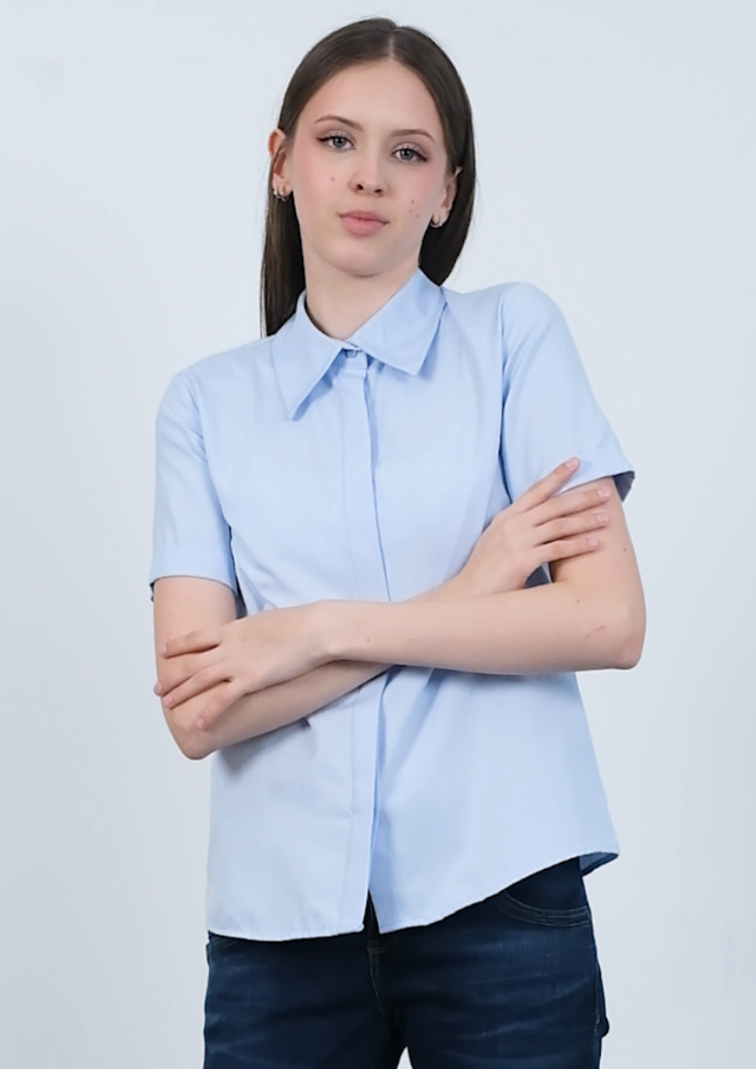 Poplin Kumaş Kısa Kollu Gizli Düğmeli Gömlek