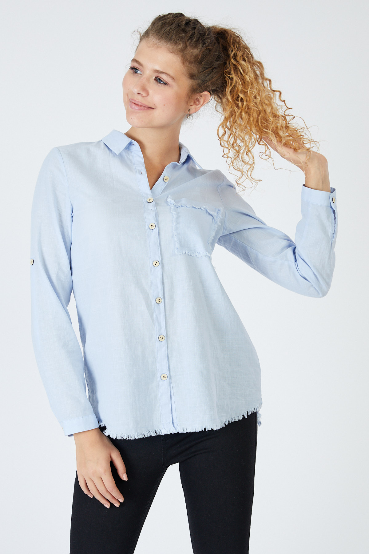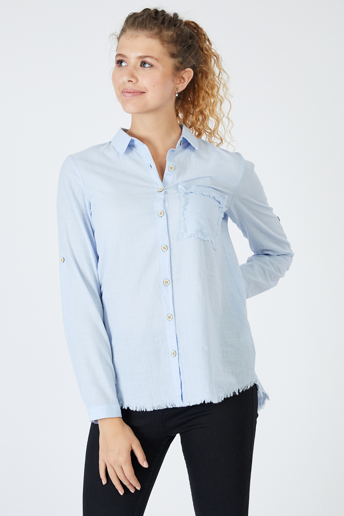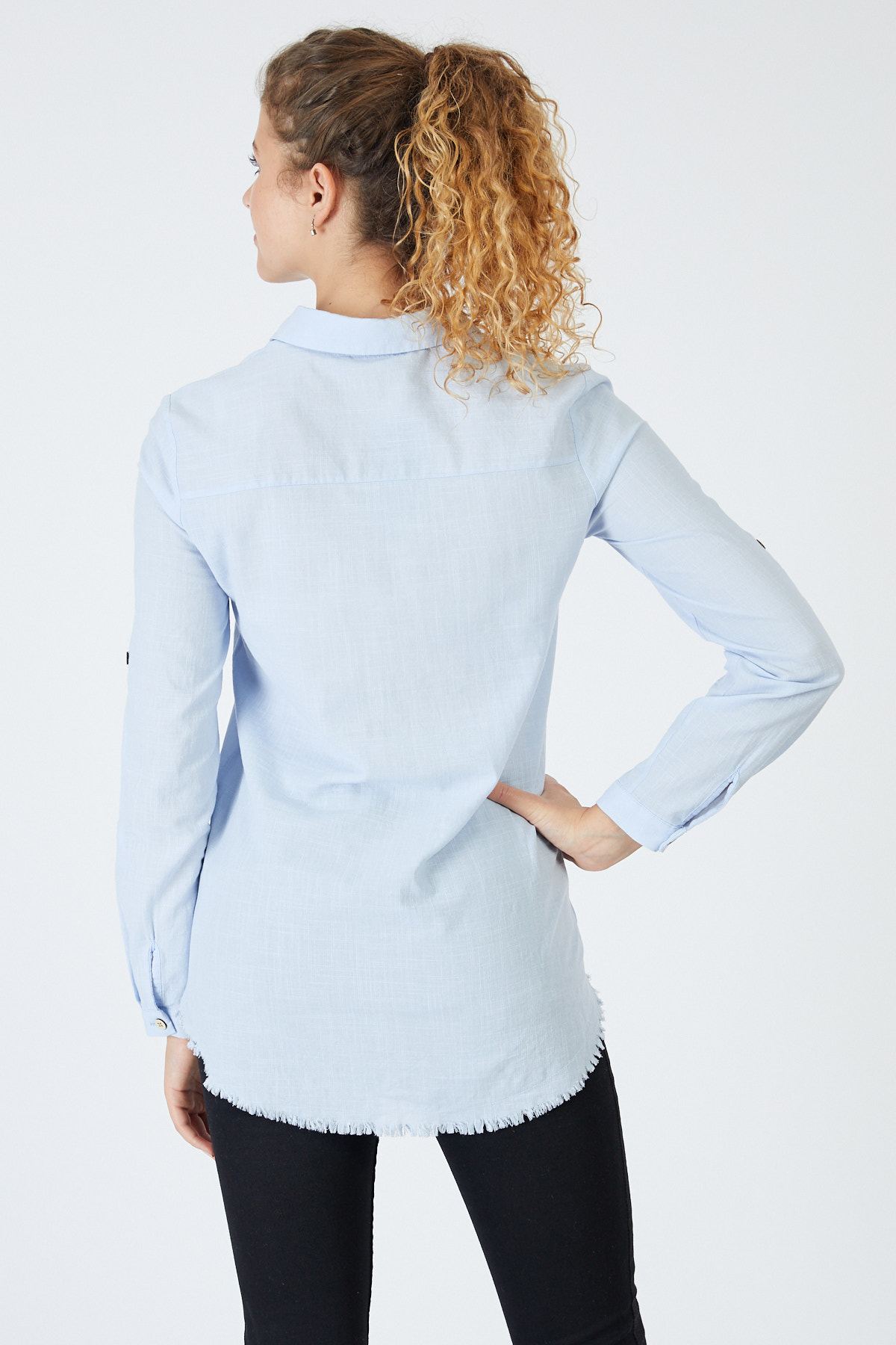 Ürün Özellikleri: Klasik yaka, beyaz düğmeli, cep ve etek kısımları püskül detaylı, tam kalıp, uzun kollu gömlek.