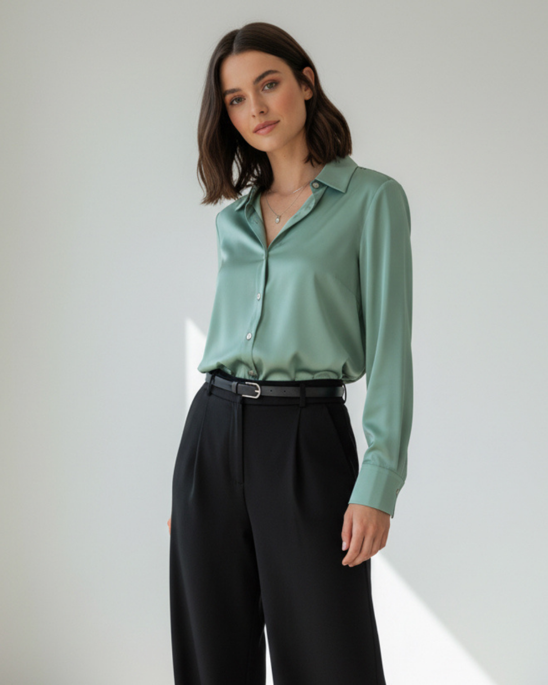 Saten Yüzeyli Fitted Gömlek