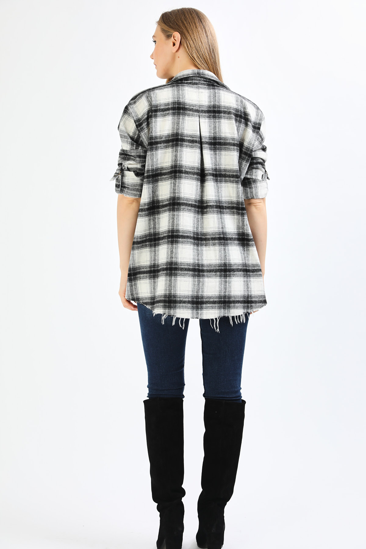 Siyah Beyaz Cepli Ekose Oduncu Gömlek