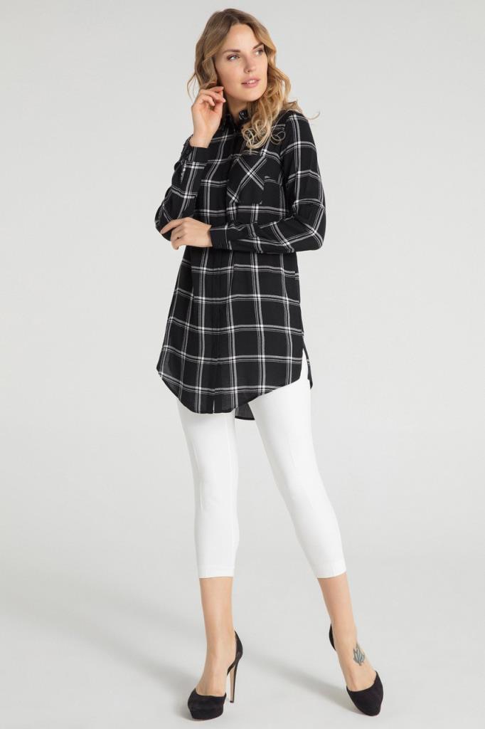 Ürün Özellikleri: Klasik yaka, gizli düğme iliklemeli, cep detaylı, yanları yırtmaçlı, çan model tunik elbise.