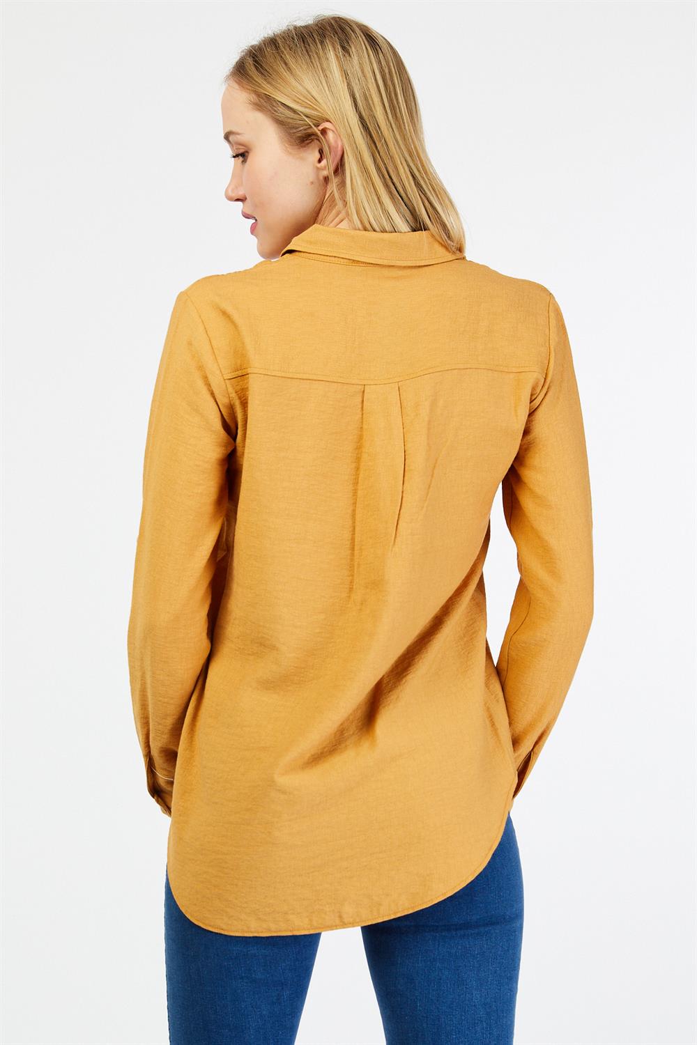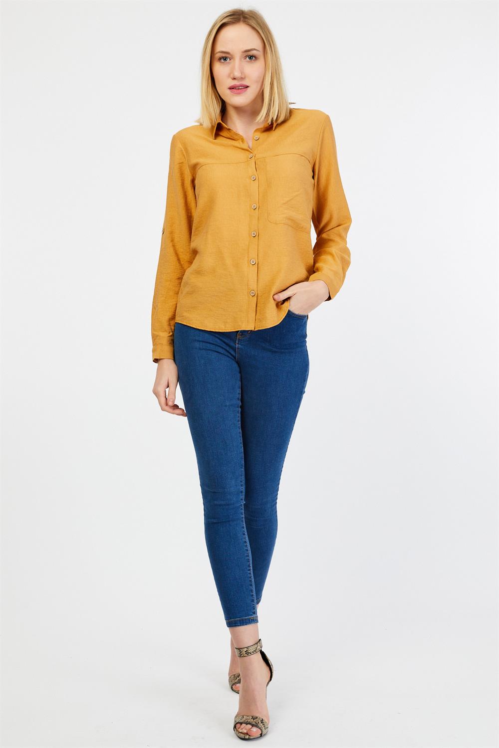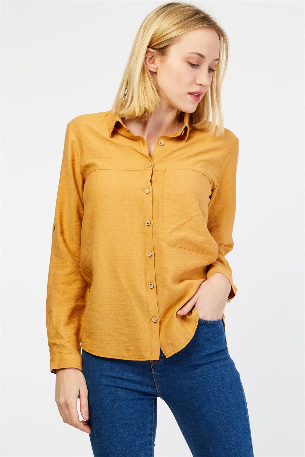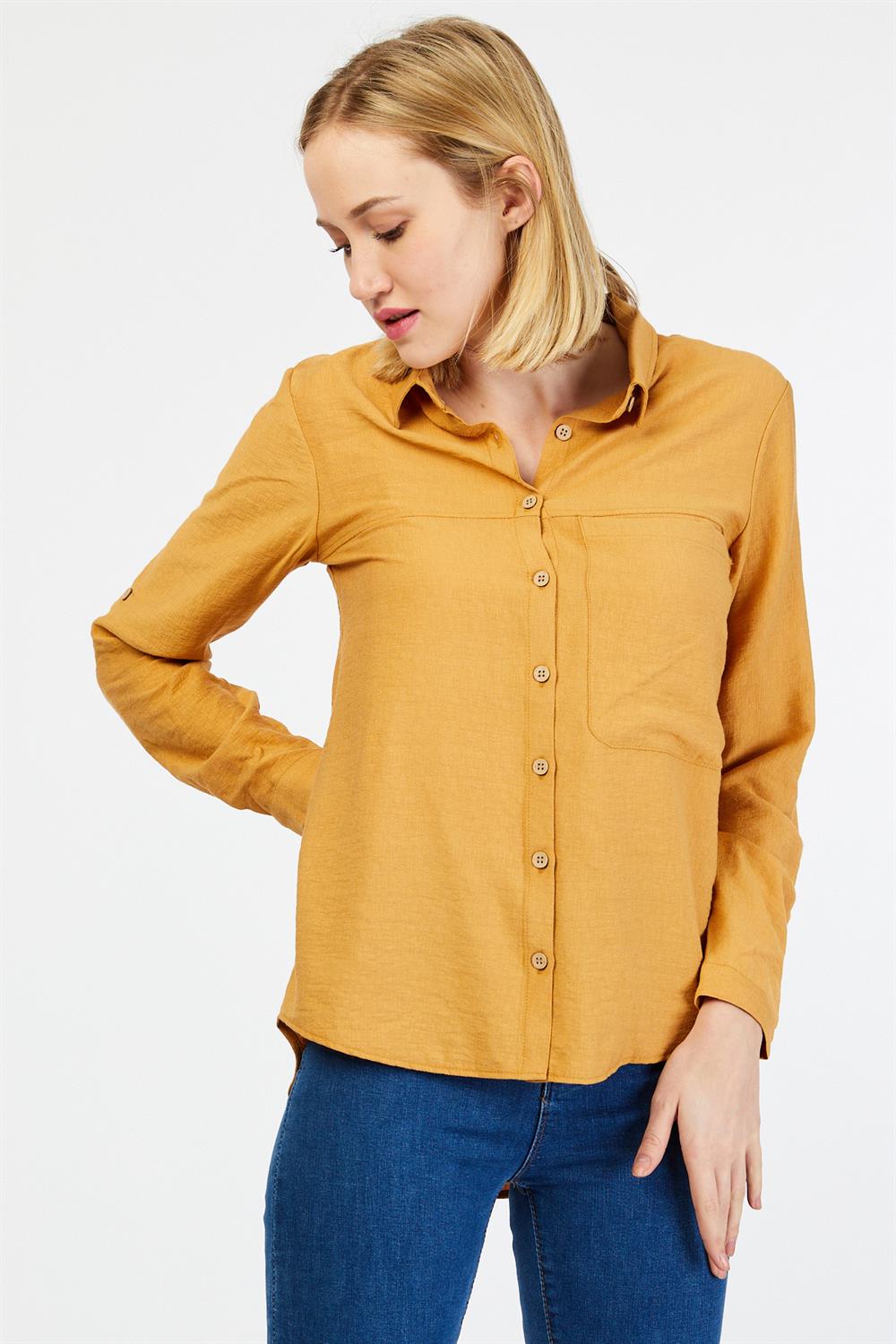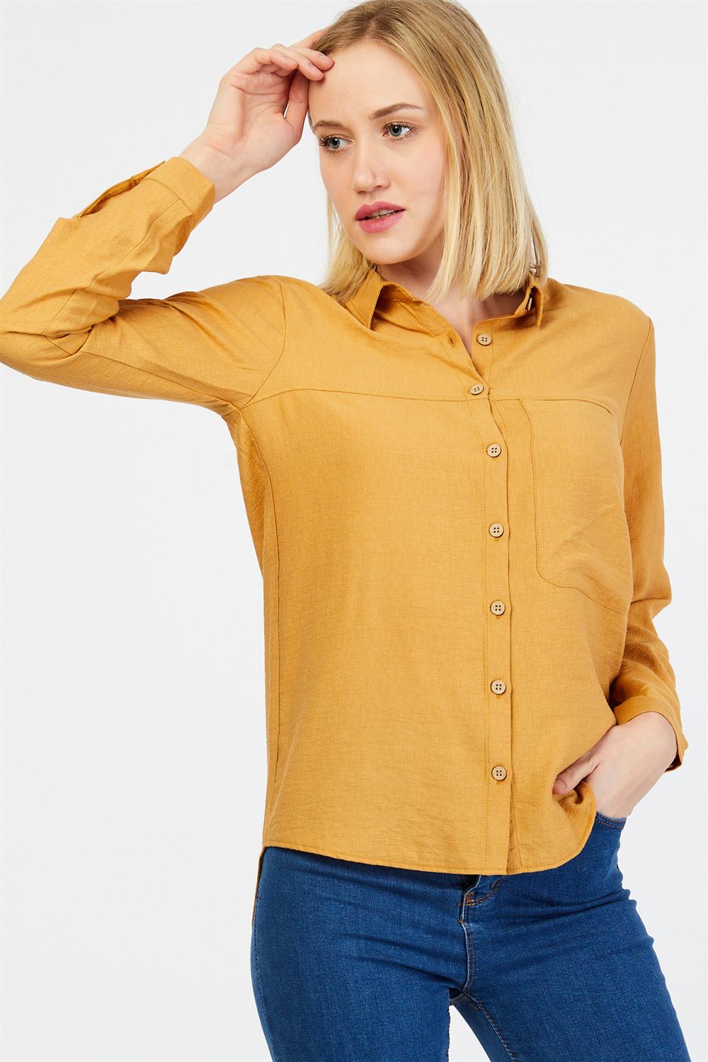 Ürün Özellikleri: Klasik yaka, tahta düğmeli, tam kalıp, uzun kollu gömlek.