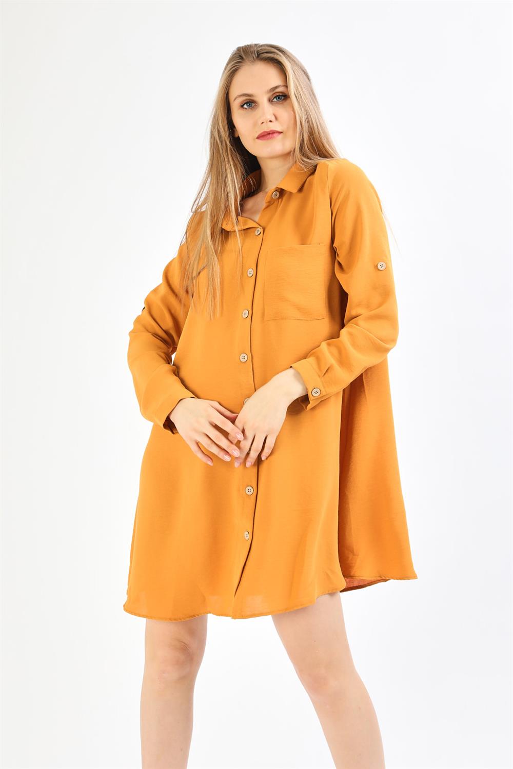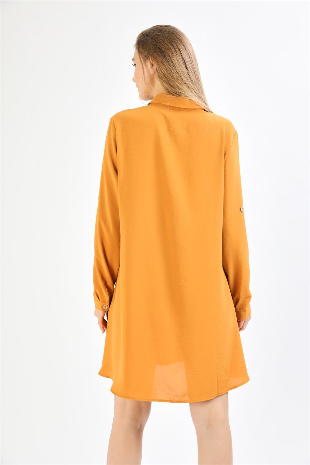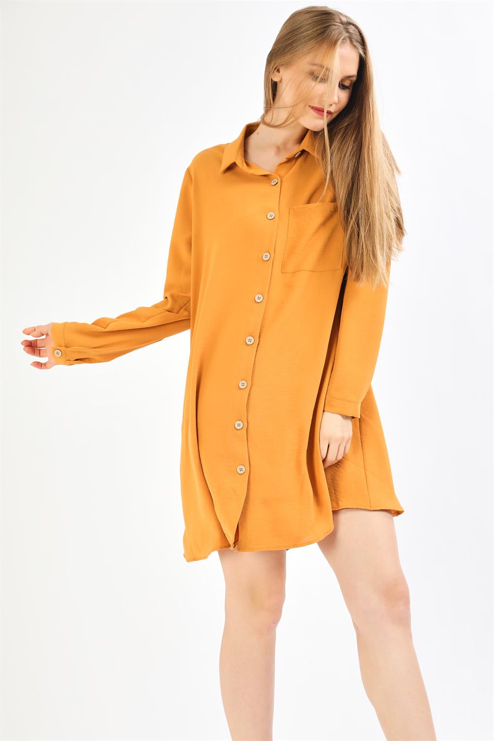 Tahta Düğmeli Hardal Tunik Elbise